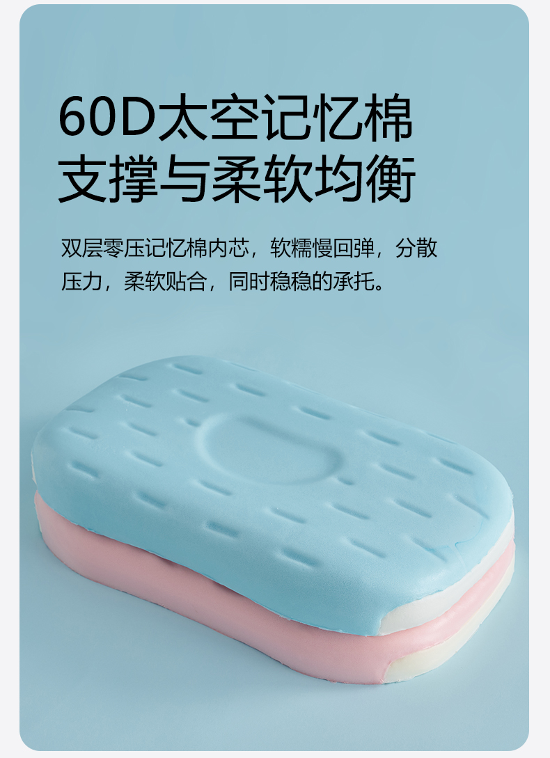 (总)鼎盛乳胶 2026新款零压记忆棉枕叠云双层枕枕头枕芯,组合图,男款灰,女款粉