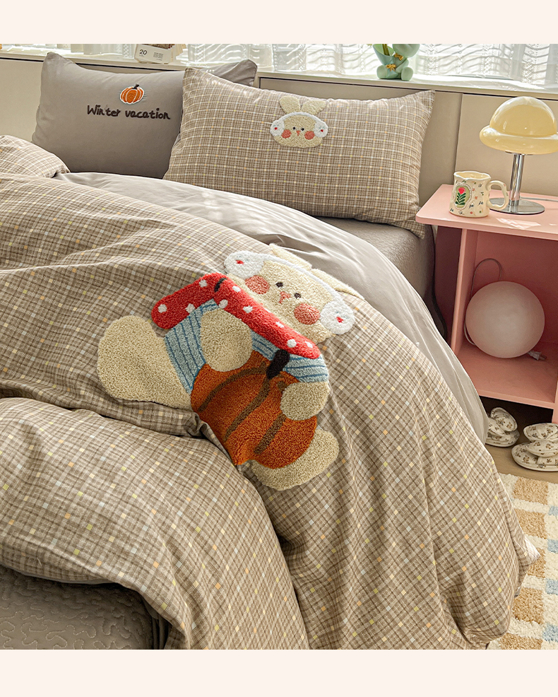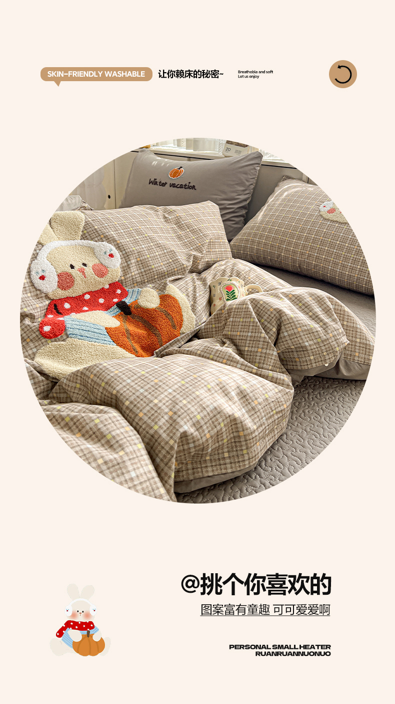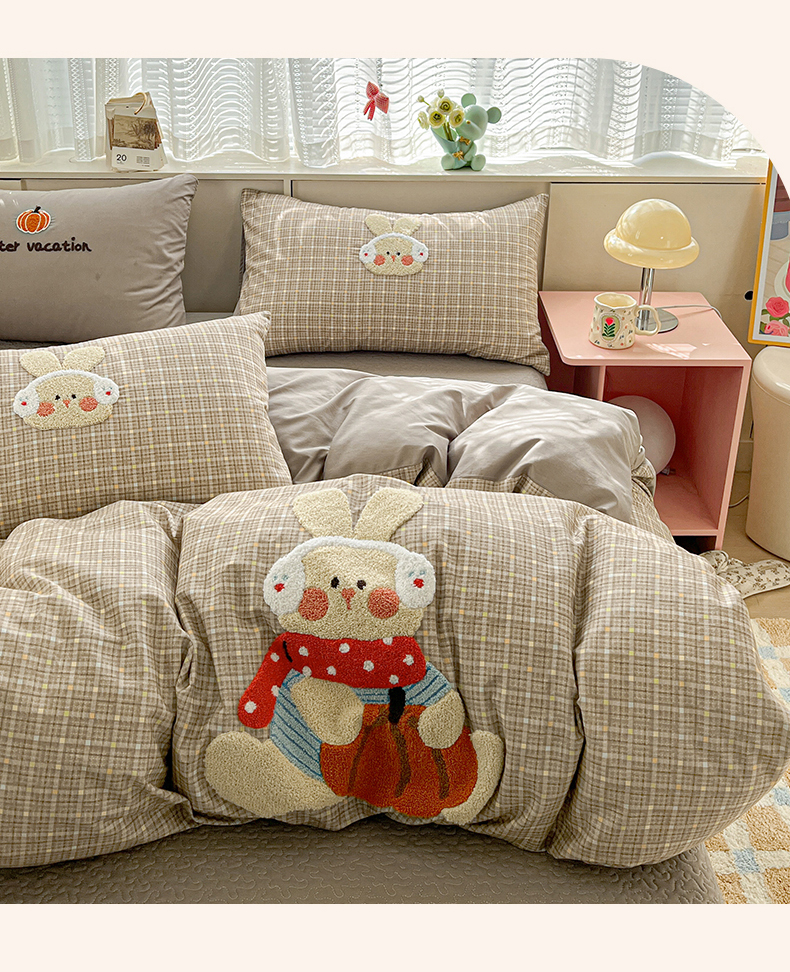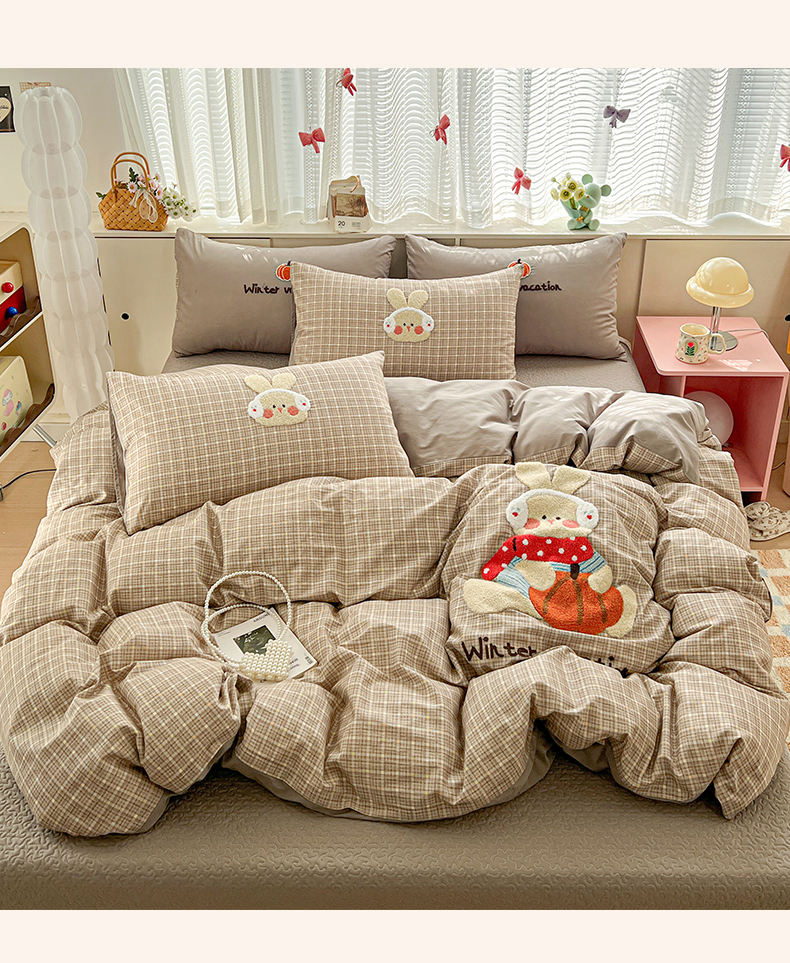鑫喜莱家纺 2026新款全棉纯棉13372床盖款原创毛巾绣四件套 南瓜小兔