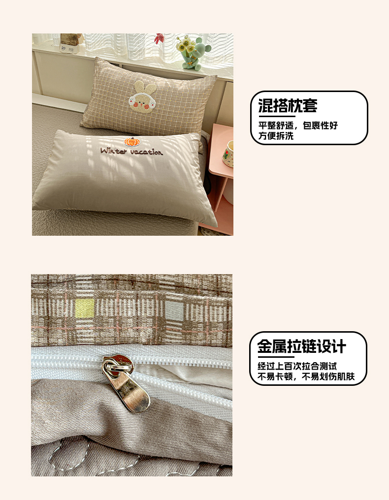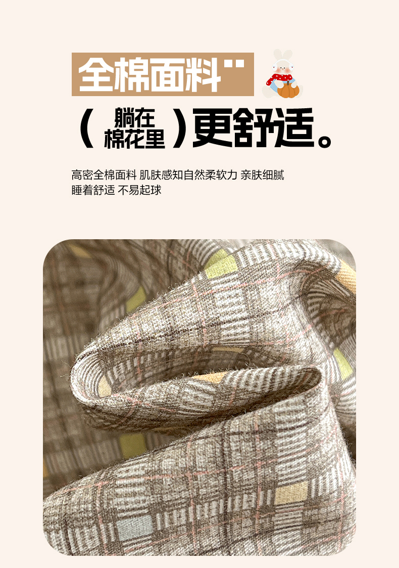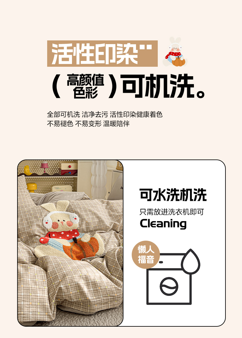 商品名称:鑫喜莱家纺 2026新款全棉纯棉13372床盖款原创毛巾绣四件套 南瓜小兔