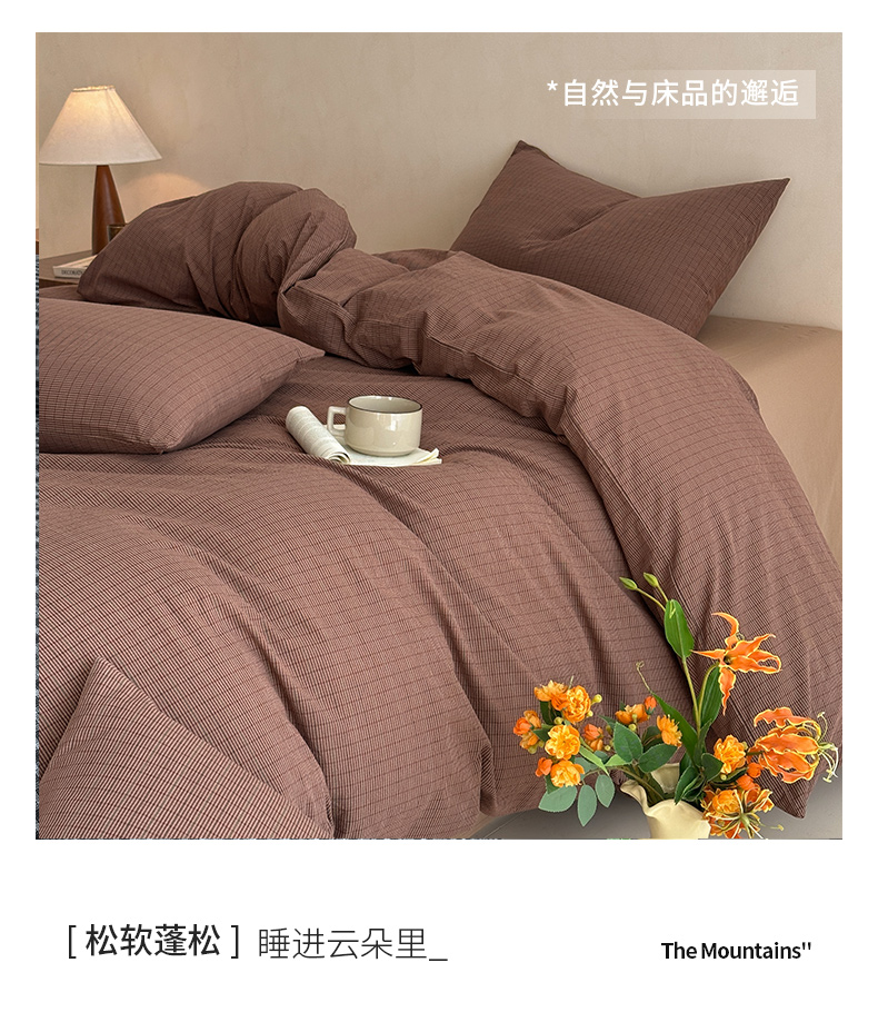 当前位置: 91家纺网 > 商品网购 > 床品套件 > 四件套 > 全棉普通四件套 > ab家纺 2026新款色织水洗棉全棉四件套 山柚-棕