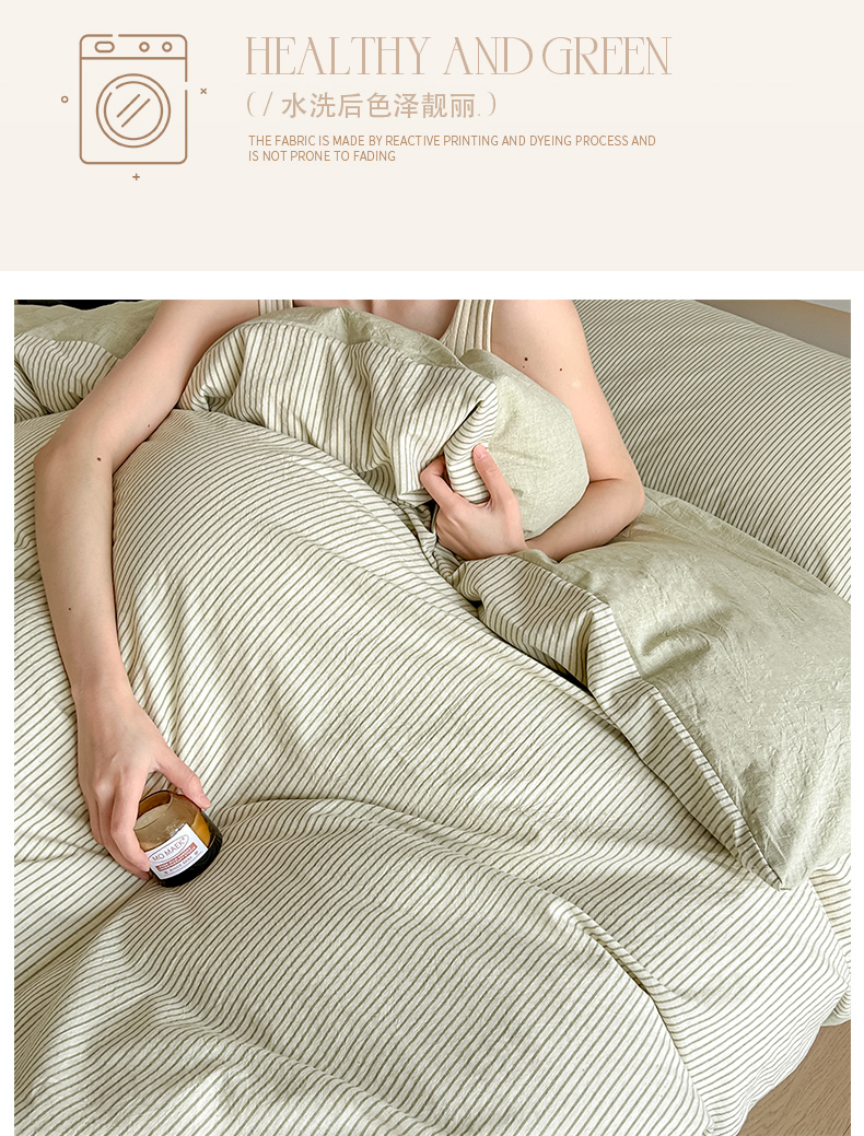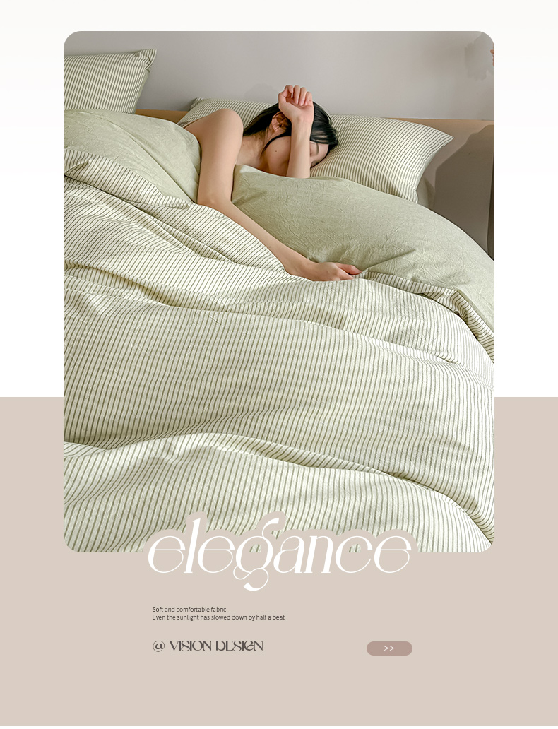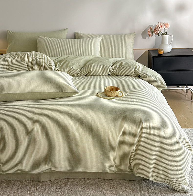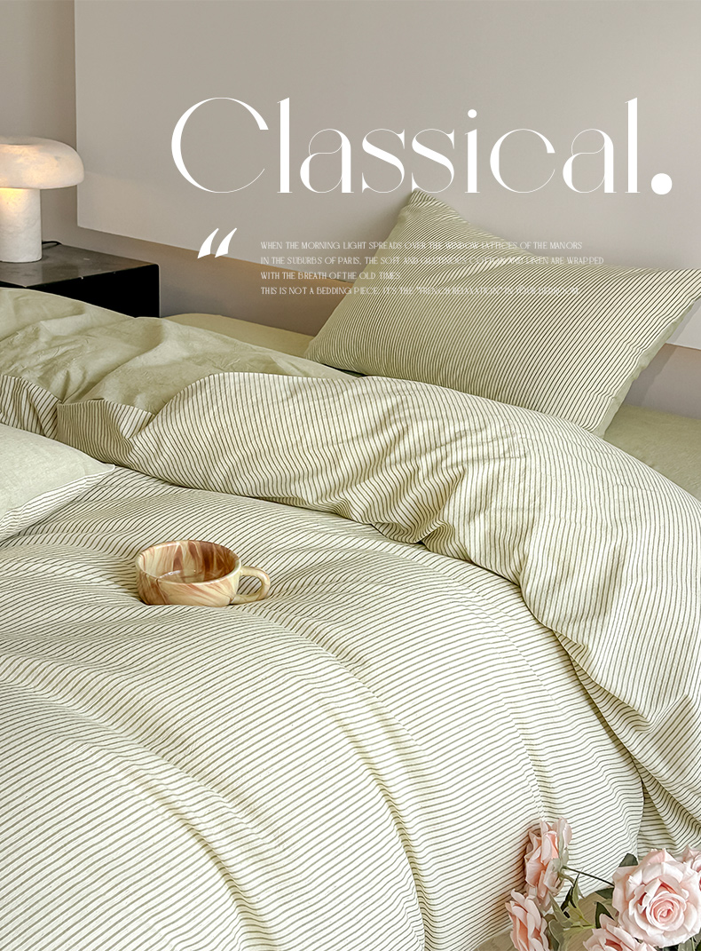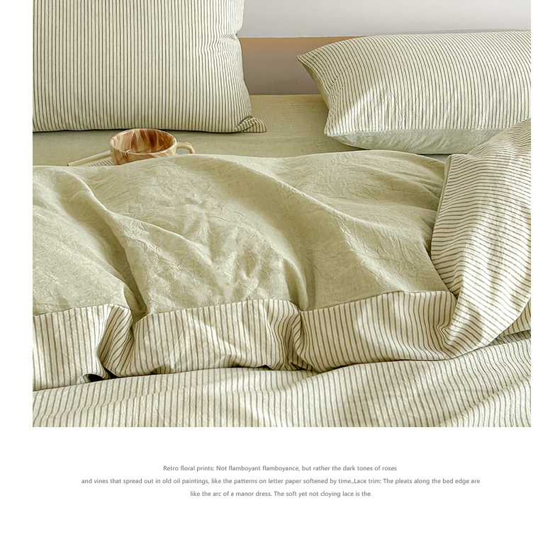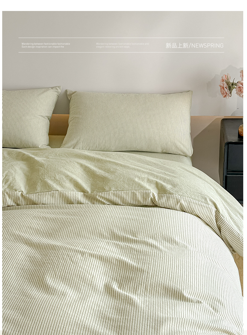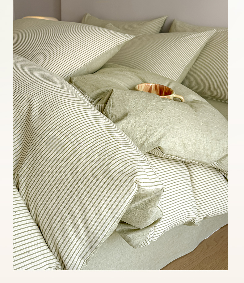 当前位置: 91家纺网 > 商品网购 > 床品套件 > 四件套 > 其它四件套 > ab家纺 2026新款条纹色织棉麻四件套 禾野-绿