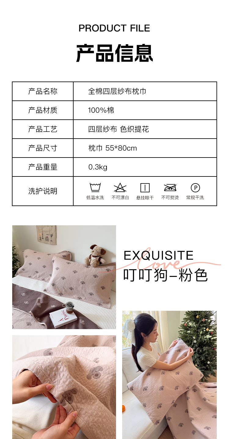 (总)沐瑟家纺 2026新款纯棉四层纱布枕巾-叮叮狗和浅跳兔,叮叮狗-灰色,叮叮狗-粉色,叮叮狗-咖色,浅跳兔-粉色,浅跳兔-灰色,浅跳兔-咖色,组合图