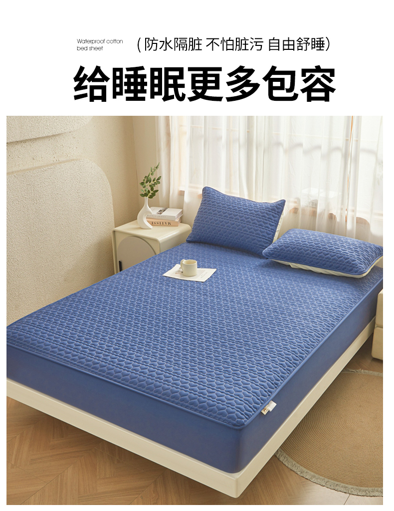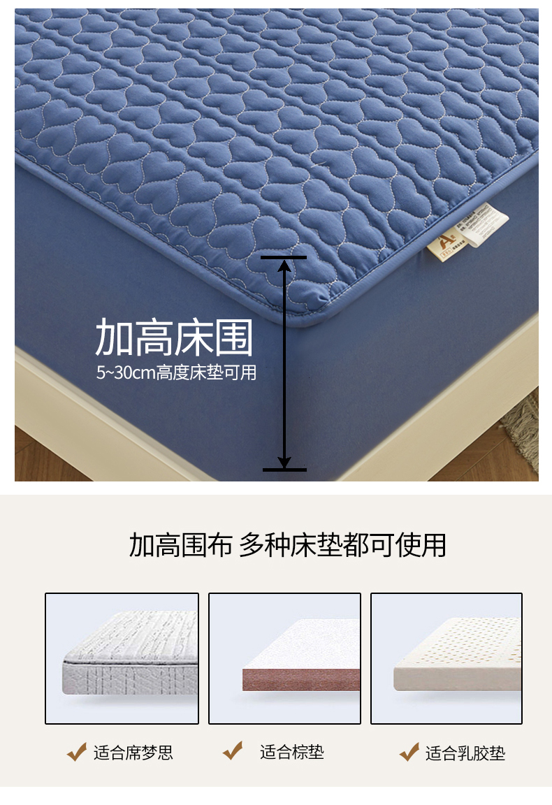 邵依家纺 2026新款原棉防水床笠系列 爱心黛蓝