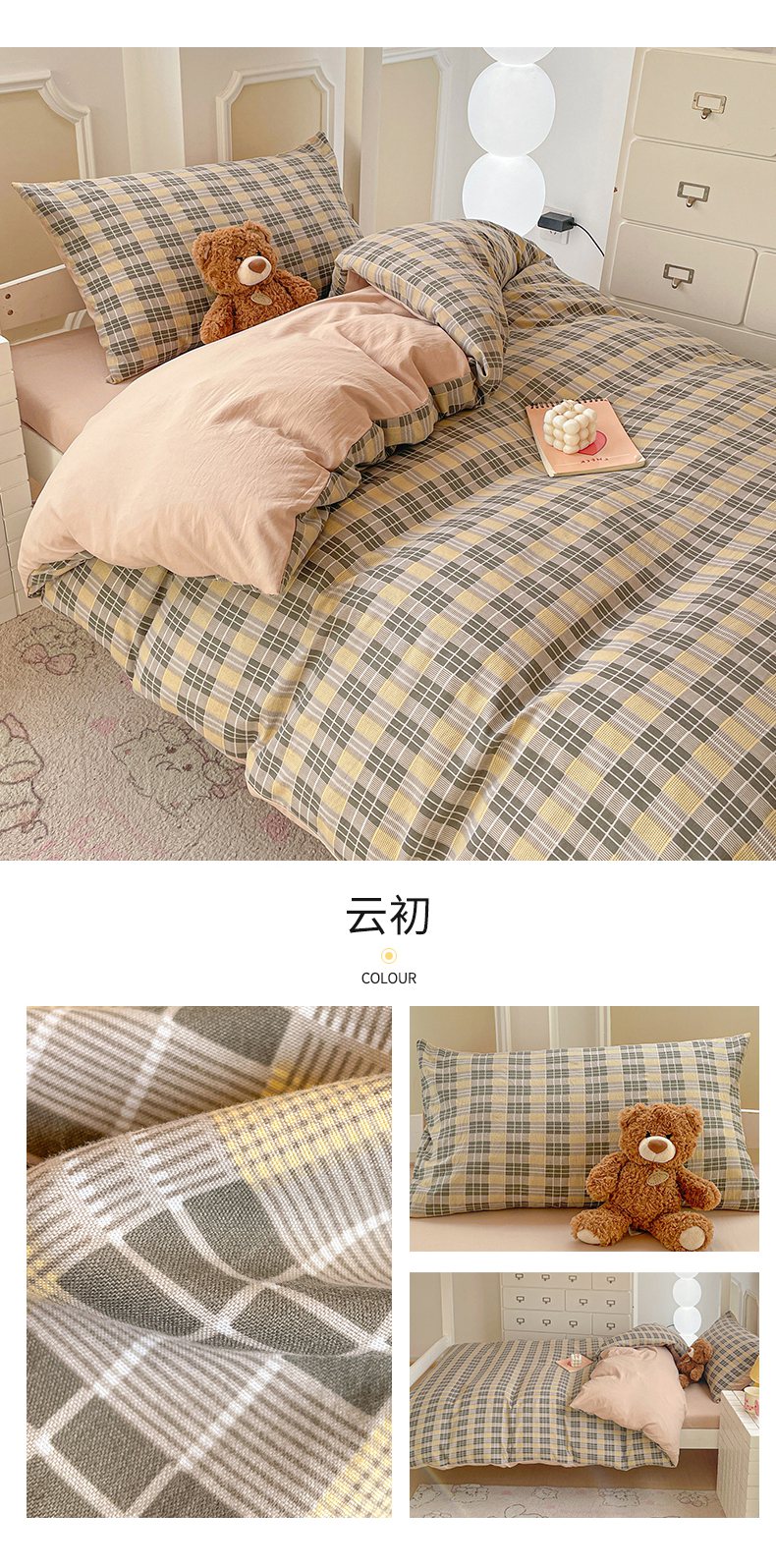 当前位置: 91家纺网 > 商品网购 > 床品套件 > 四件套 > 水洗棉四件套 > 纽缦家纺 2026新款水洗棉简约格子风学生床套件系列 爱慕-粉