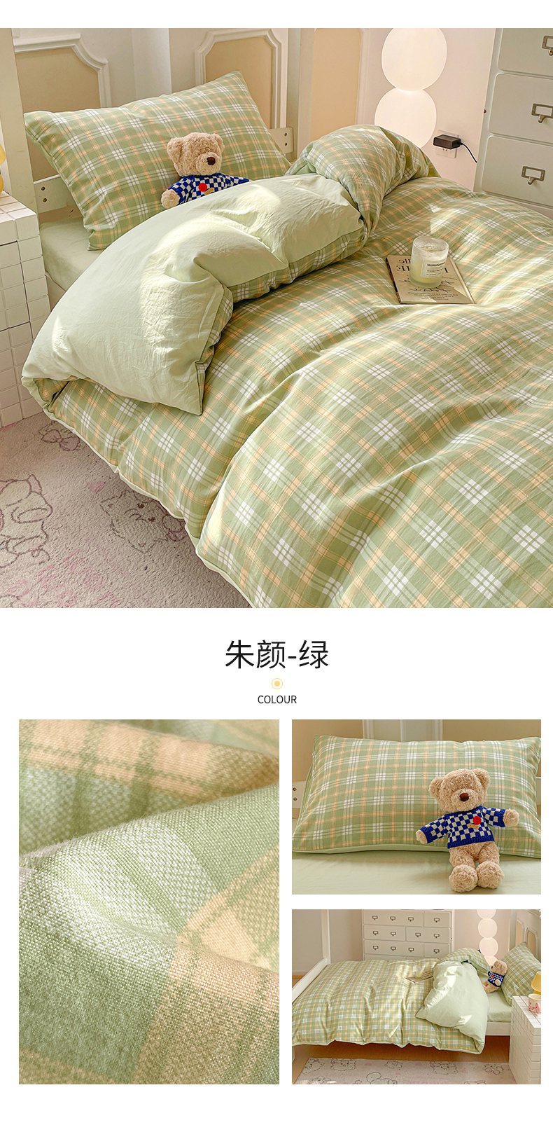 当前位置: 91家纺网 > 商品网购 > 床品套件 > 四件套 > 水洗棉四件套 > 纽缦家纺 2026新款水洗棉简约格子风学生床套件系列 朴雅