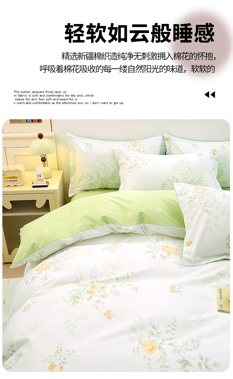 当前位置: 91家纺网 > 商品网购 > 床品套件 > 四件套 > 全棉普通四件套 > 织写 2026新款A类 四件套纯棉全棉12868 预留缩水尺寸 晚晴-绿