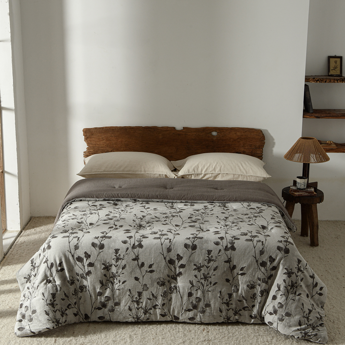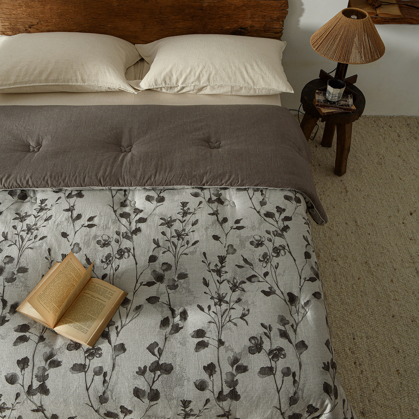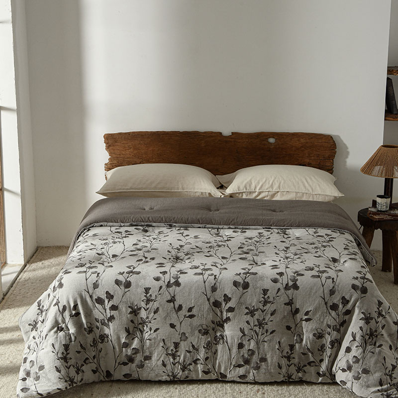 • 91家纺网 家纺一手货源 找家纺 (总)松色家居 2026新款全棉大豆冬被被子被芯-墨叶垂枝-灰