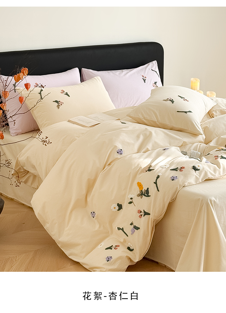 (总)Mr.pig猪先生水洗棉 2026新款全棉水洗棉毛巾绣四件套-花絮(展示价格为控价,实际价格请联系客服),花絮-微微紫,花絮-杏仁白