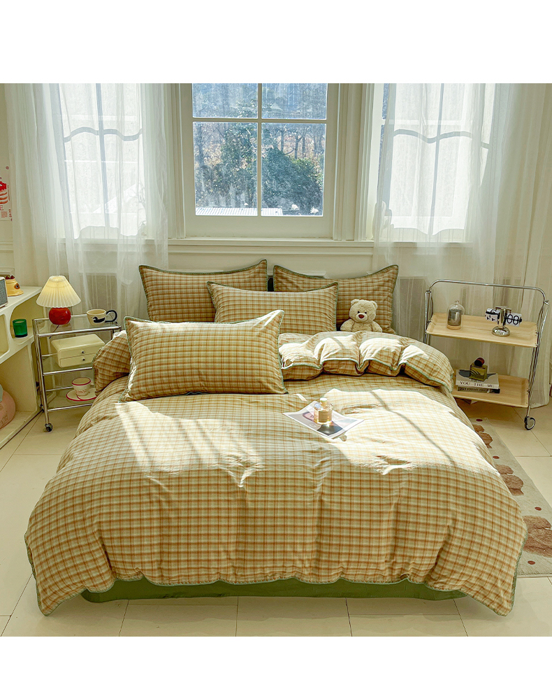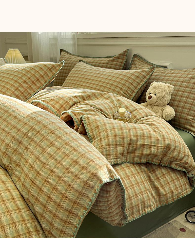 莱茵家居 2026新款A类全棉色织水洗棉格子贝壳边套件-愫格系列 愫格-松绿