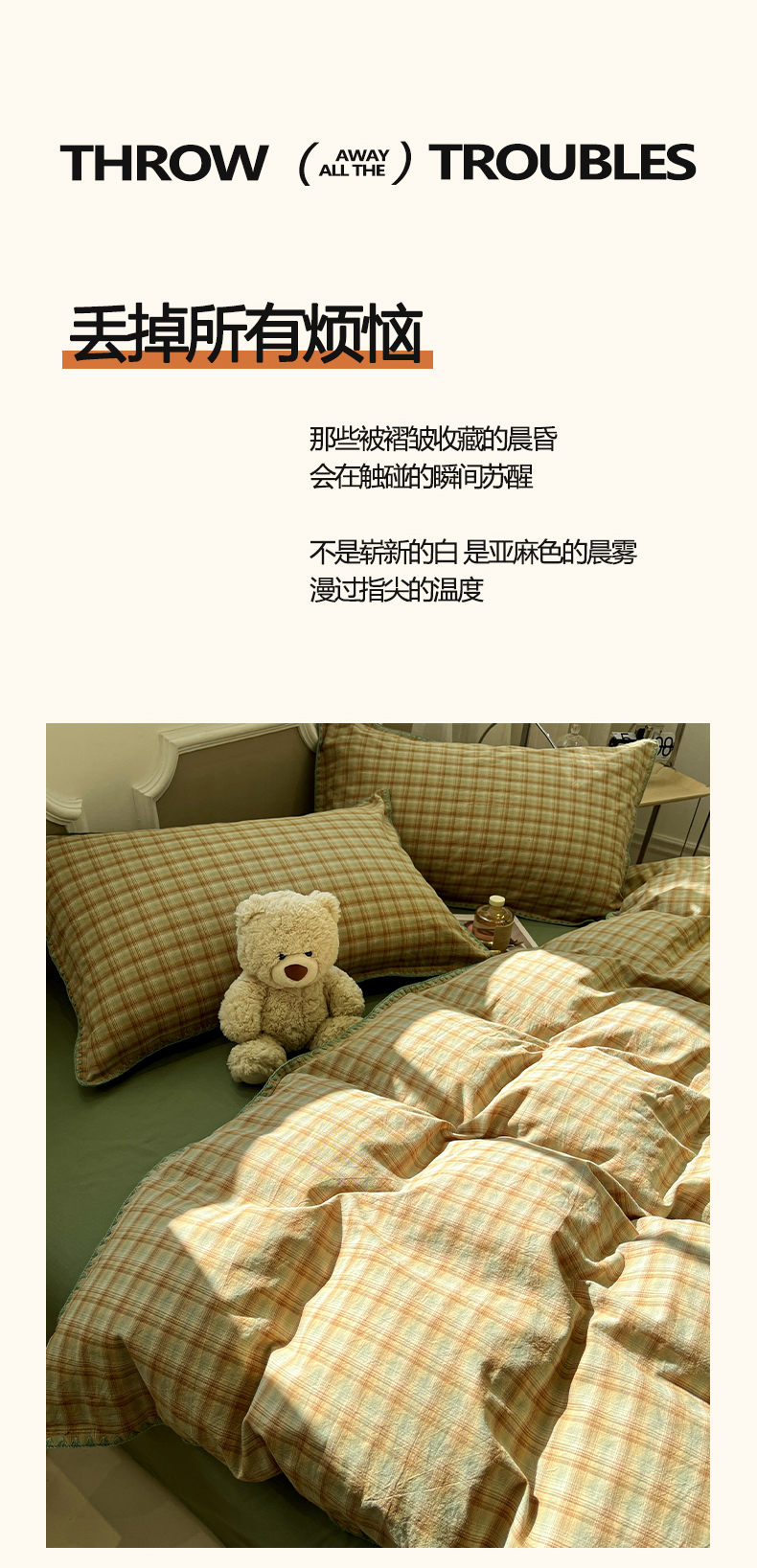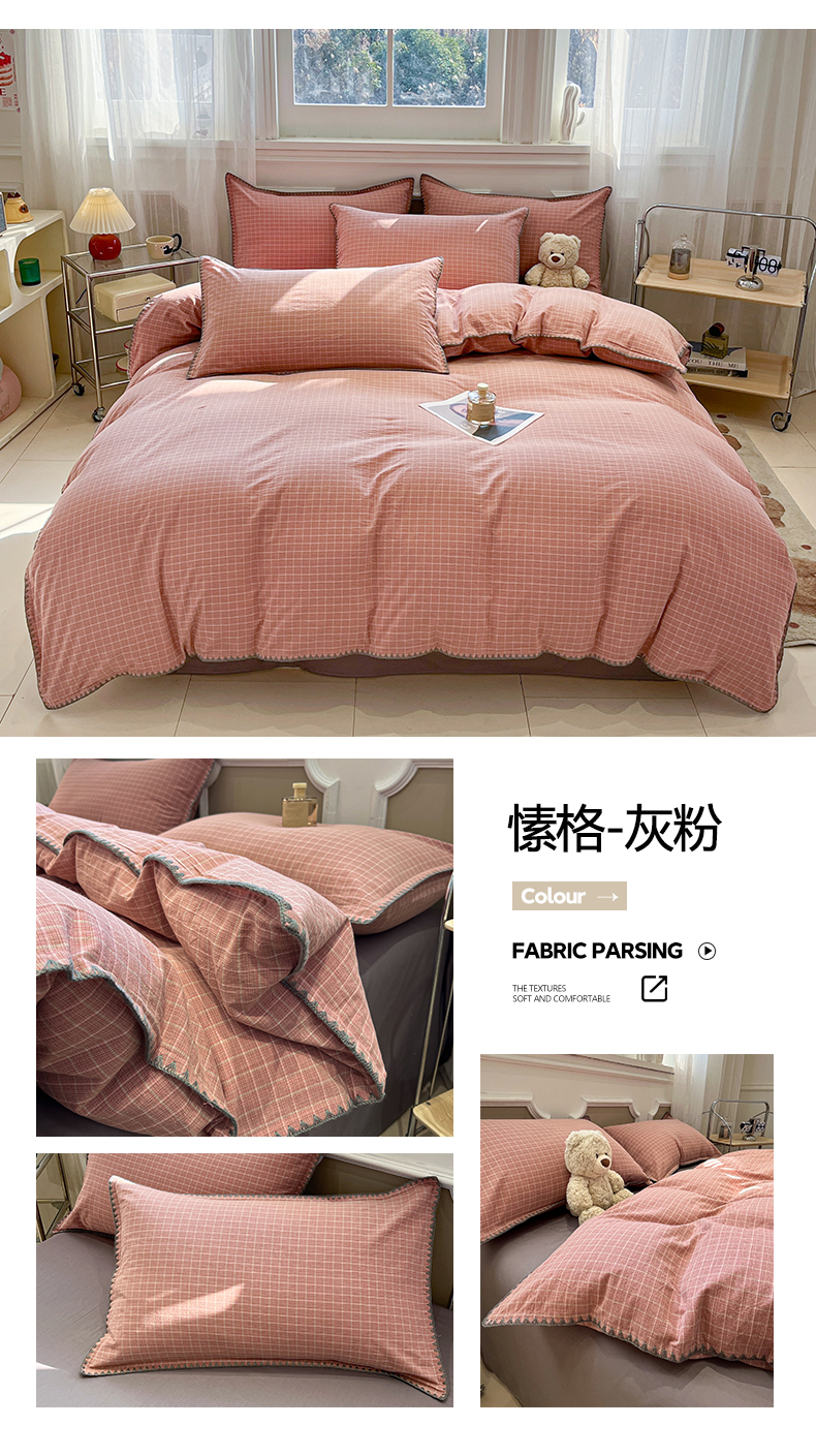 (总)莱茵家居 2026新款A类全棉色织水洗棉格子贝壳边套件-愫格系列,愫格-茶褐,愫格-黑檀,愫格-松绿,愫格-栗棕,愫格-琥珀,愫格-灰粉