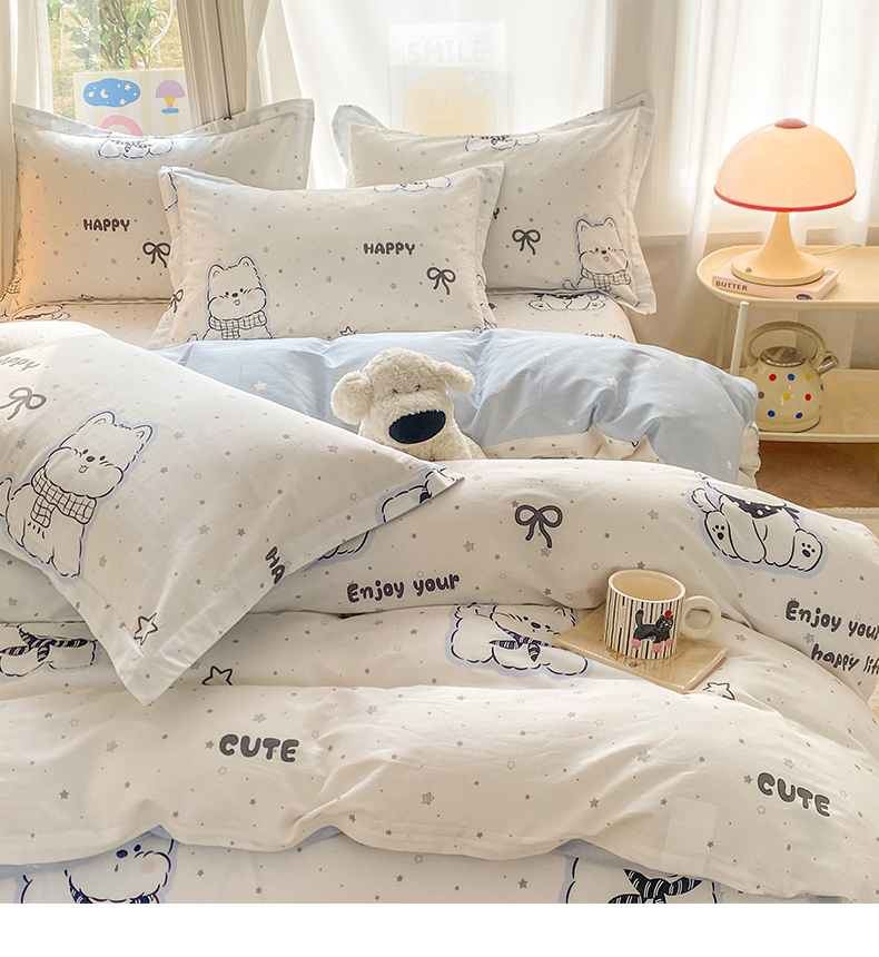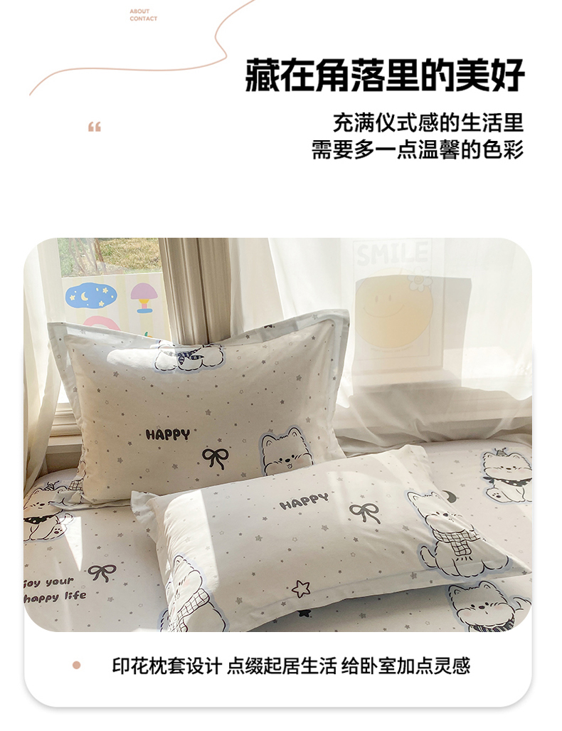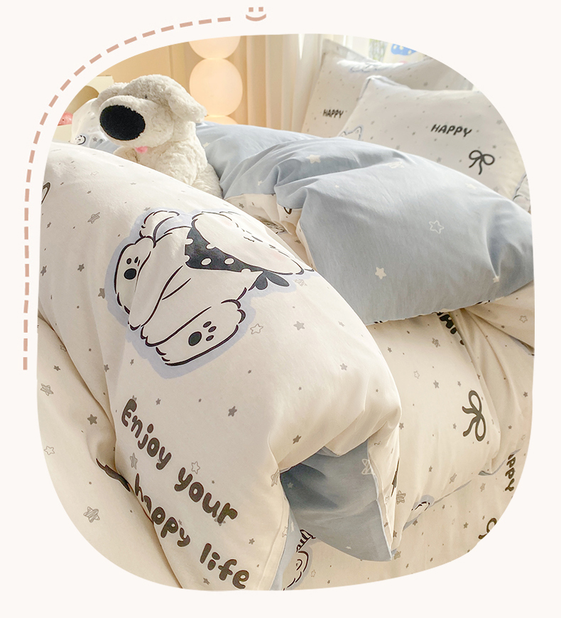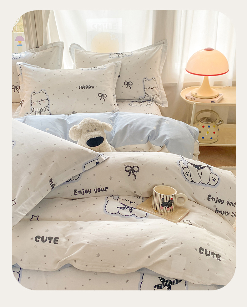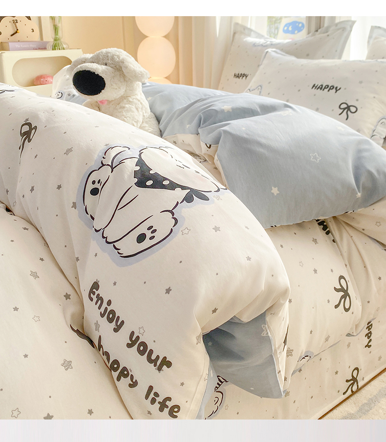 当前位置: 91家纺网 > 商品网购 > 床品套件 > 四件套 > 全棉普通四件套 > 朵安家纺 2026春夏新款12868全棉纯棉斜纹印花四件套 松糕小狗
