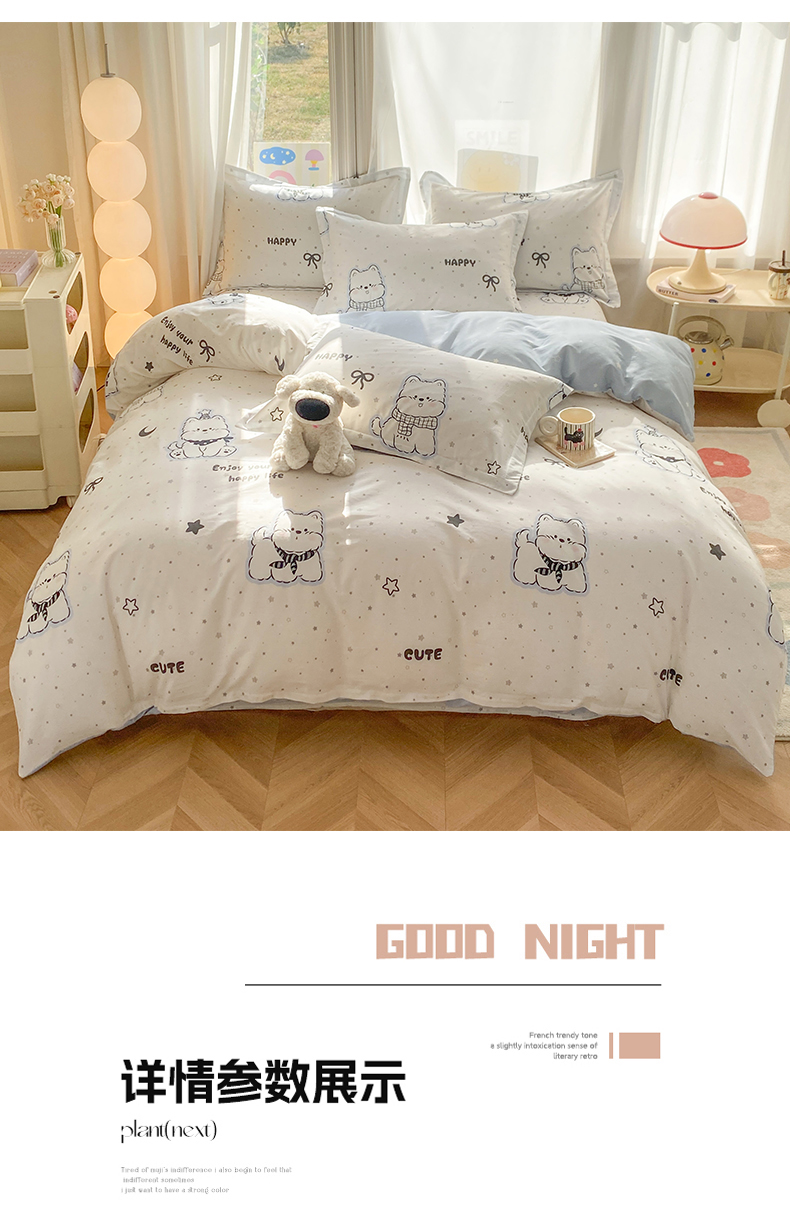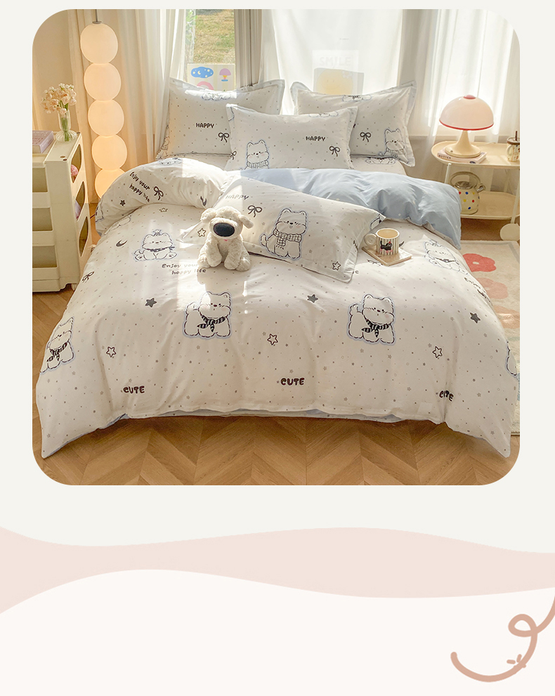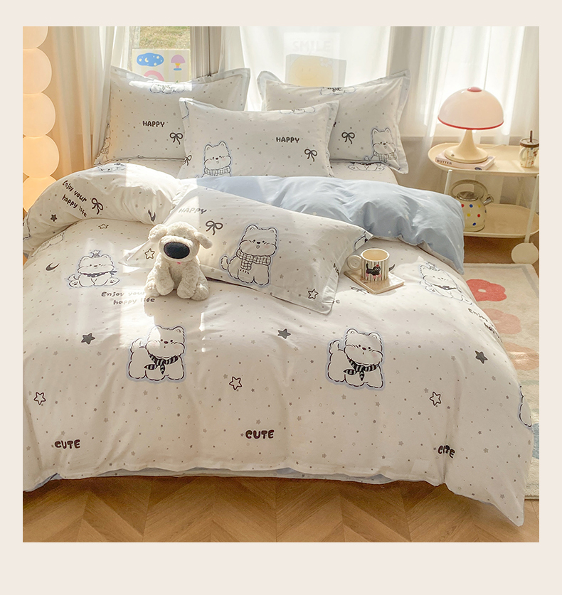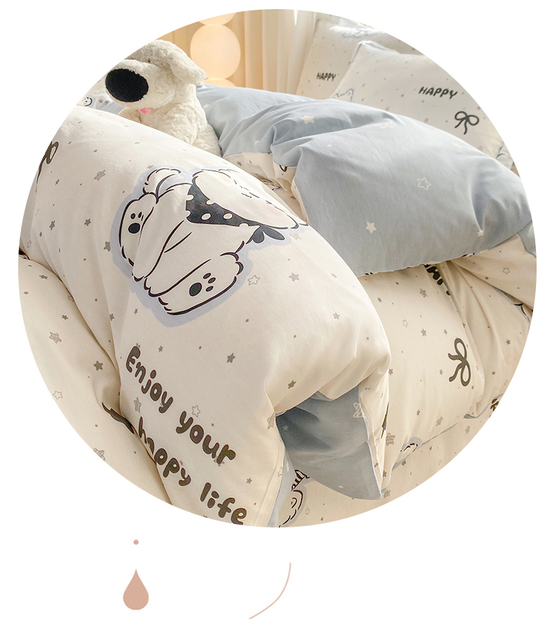 当前位置: 91家纺网 > 商品网购 > 床品套件 > 四件套 > 全棉普通四件套 > 朵安家纺 2026春夏新款12868全棉纯棉斜纹印花四件套 松糕小狗