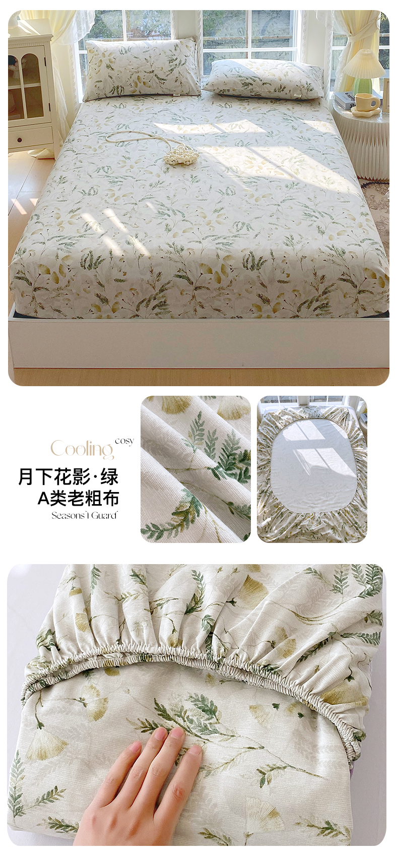 (总)金鑫汇家纺 2026新款全棉印花小清新单品床笠系列-可露丽,海盐可露丽,浅咖可露丽,浅绿可露丽,月下花影-桔,月下花影-蓝,月下花影-绿