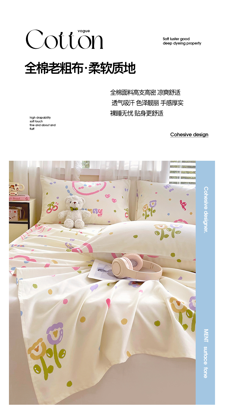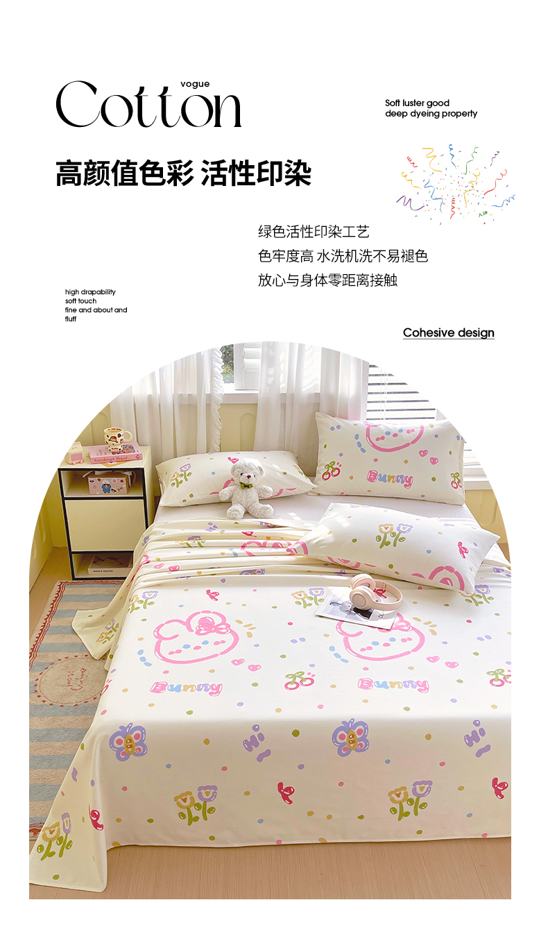 • 91家纺网 家纺一手货源 找家纺 金鑫汇家纺 2026新款全棉老粗布单品床单系列 奇趣小兔
