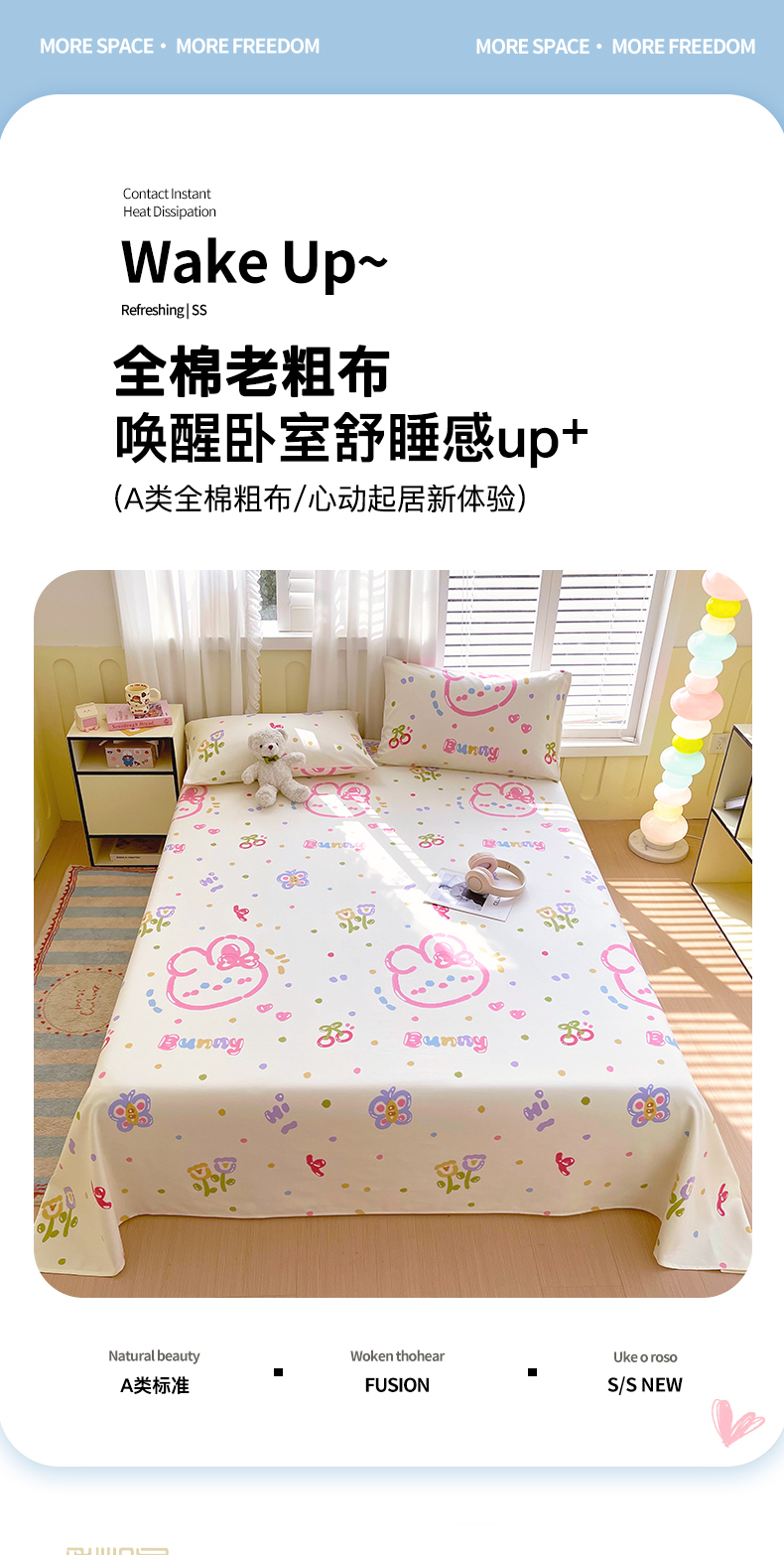 金鑫汇家纺 2026新款全棉老粗布单品床单系列 奇趣小兔