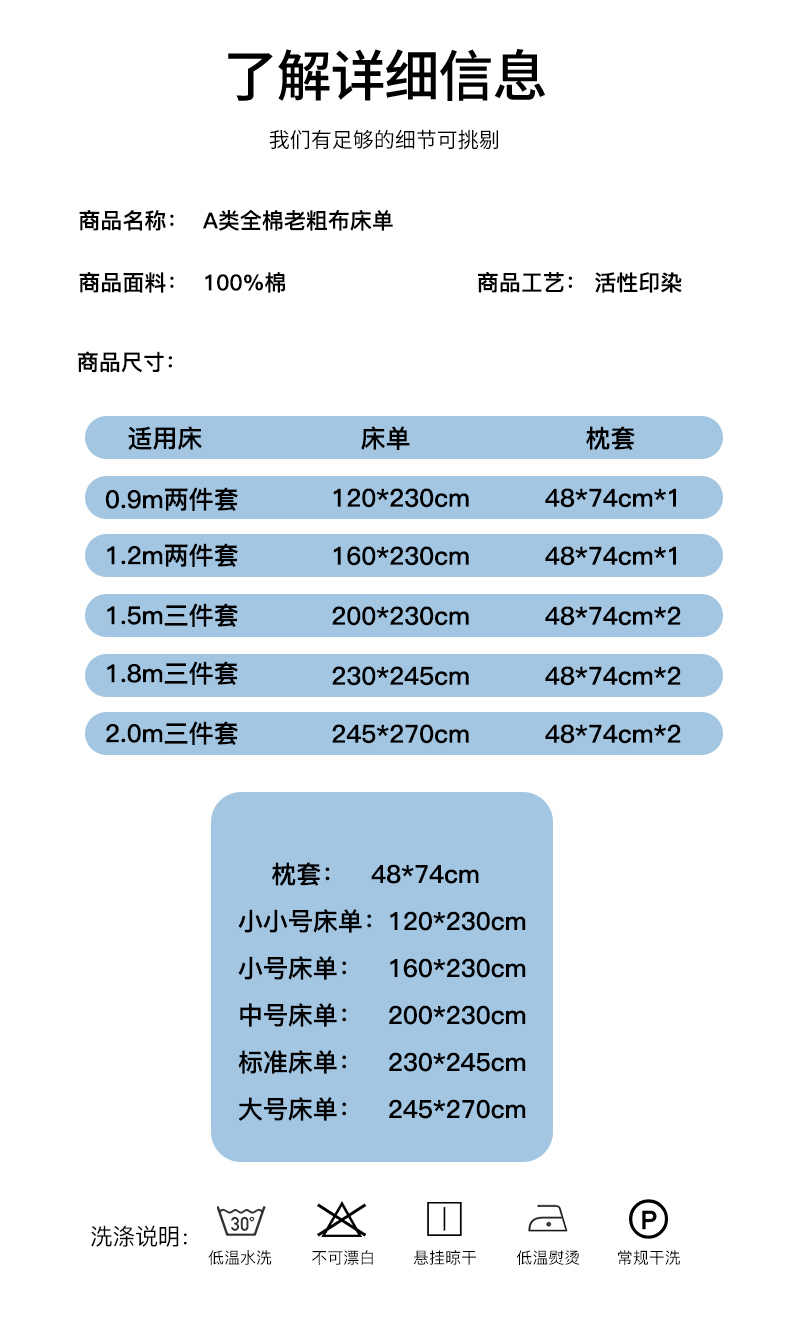 120*230cm床单+枕套一只