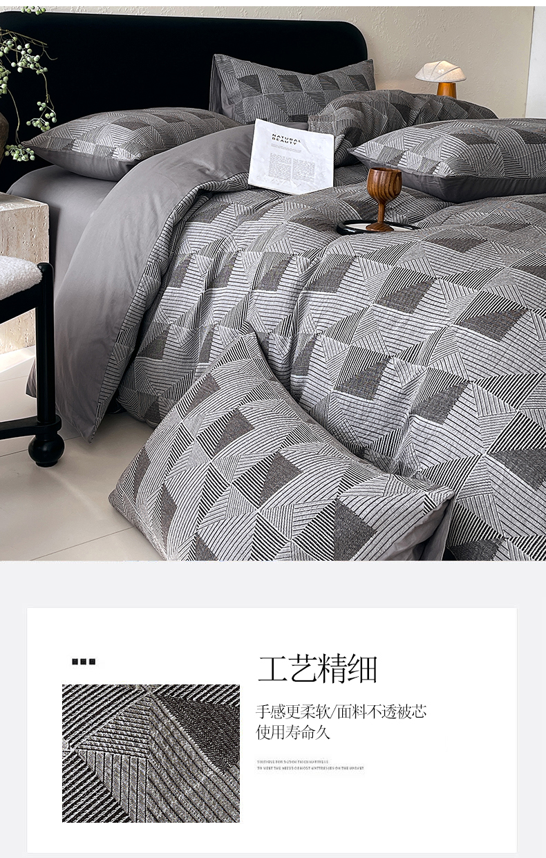当前位置: 91家纺网 > 商品网购 > 床品套件 > 四件套 > 全棉普通四件套 > 琪格格纺织 2026新款纯棉纯棉色织肌理纹提花华夫格纯棉轻奢简约款四件套 柏林-炭石灰