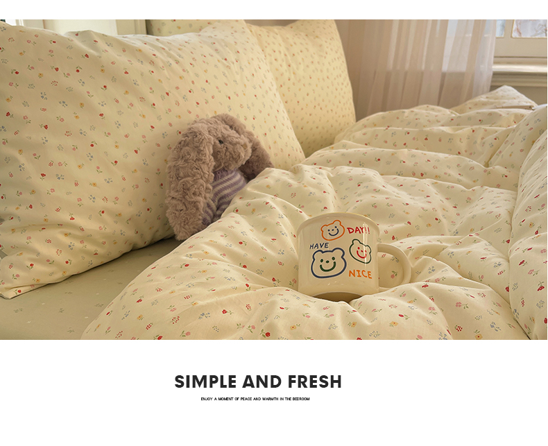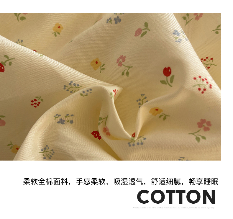 当前位置: 91家纺网 > 商品网购 > 床品套件 > 四件套 > 全棉普通四件套 > XIWEN-希文家纺 2026春夏新款40支全棉纯棉13372小清新印花四件套 小野花