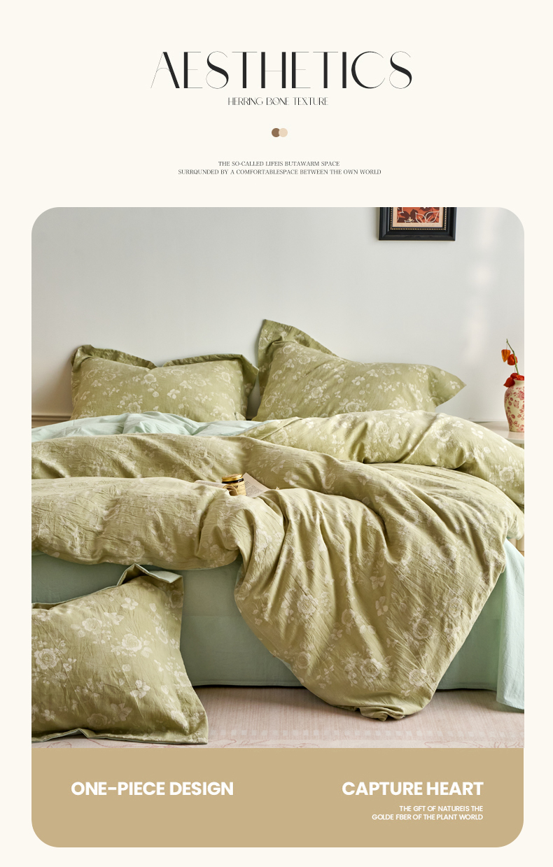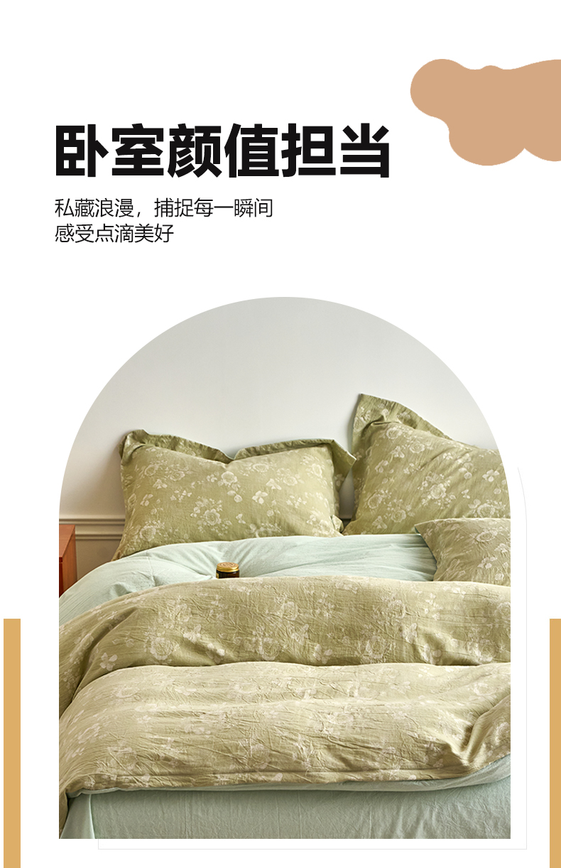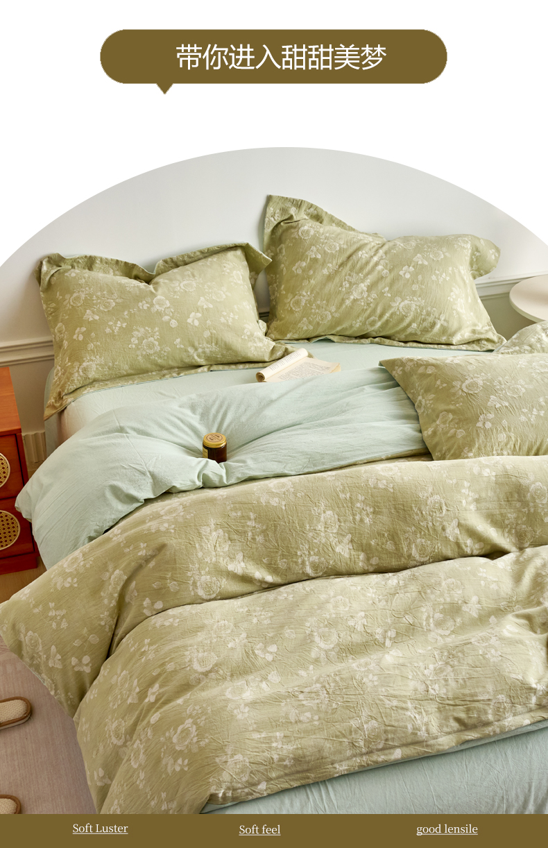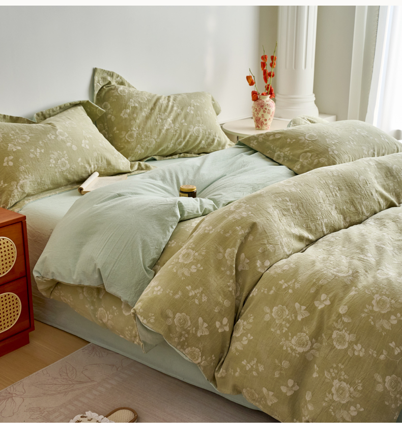 当前位置: 91家纺网 > 商品网购 > 床品套件 > 四件套 > 全棉普通四件套 > 兰紫橙家纺 2026春夏新款全棉纯棉色织提花四件套 晨曦花语-抹茶绿