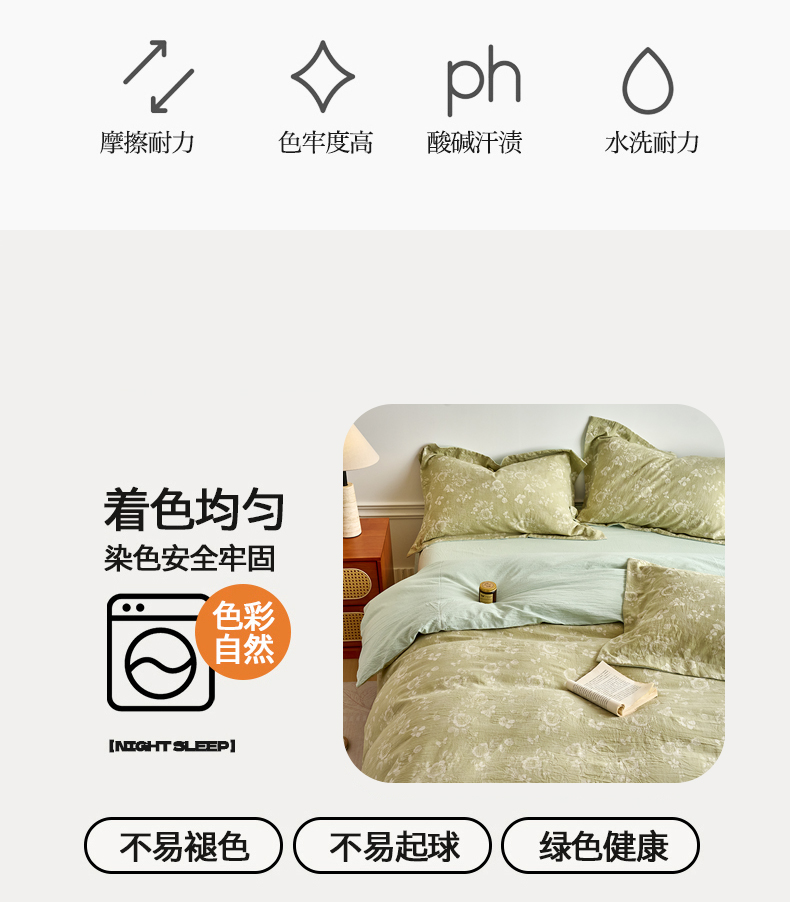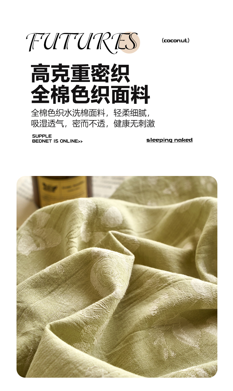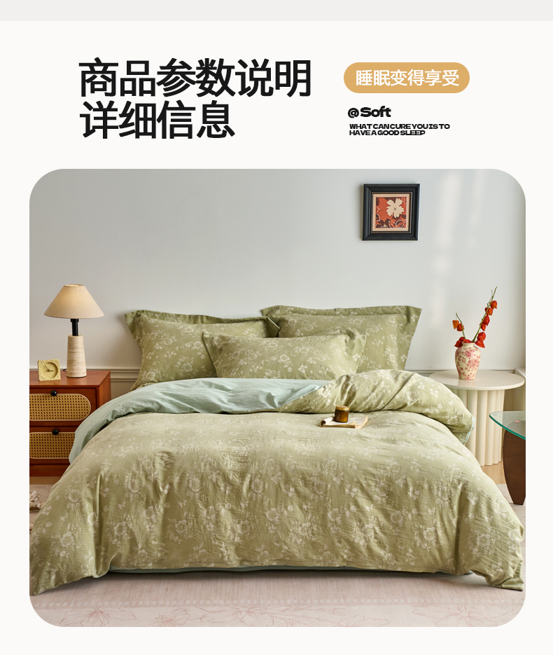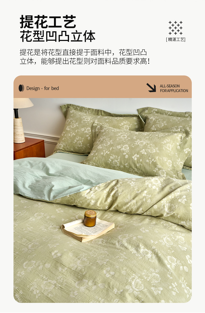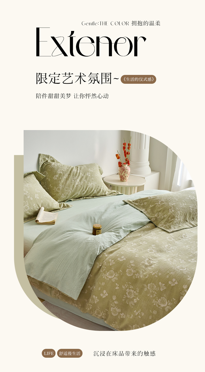 当前位置: 91家纺网 > 商品网购 > 床品套件 > 四件套 > 全棉普通四件套 > 兰紫橙家纺 2026春夏新款全棉纯棉色织提花四件套 晨曦花语-抹茶绿