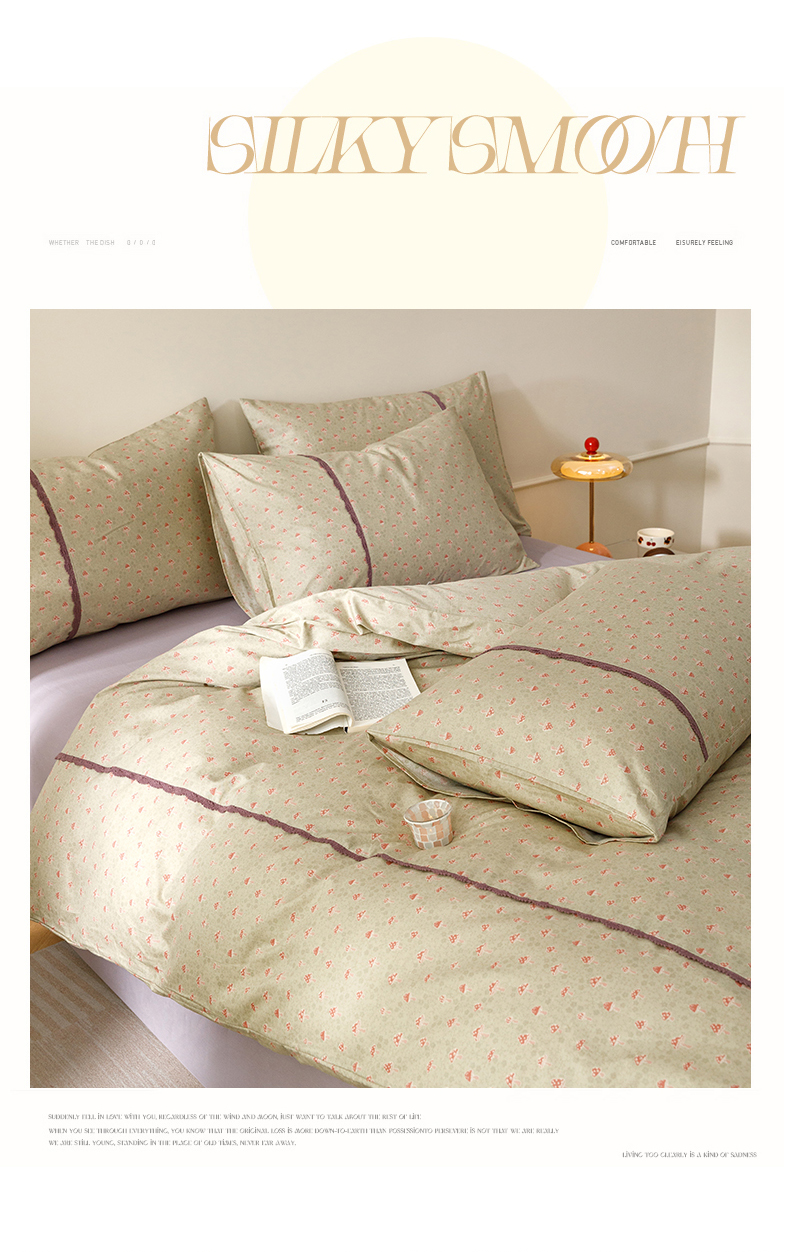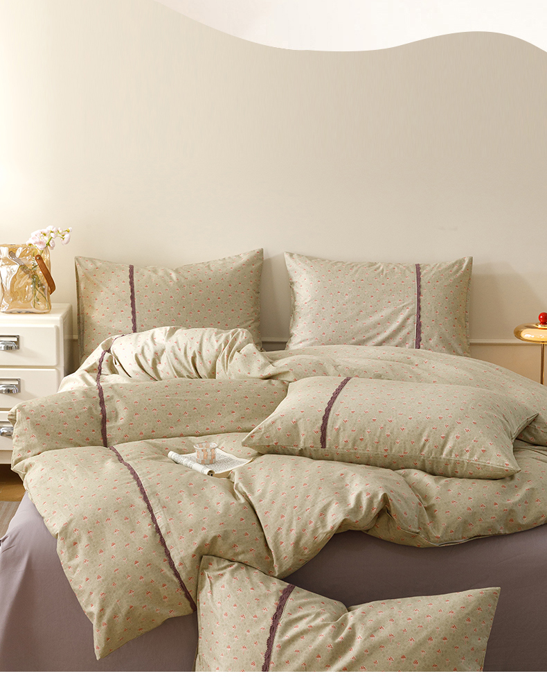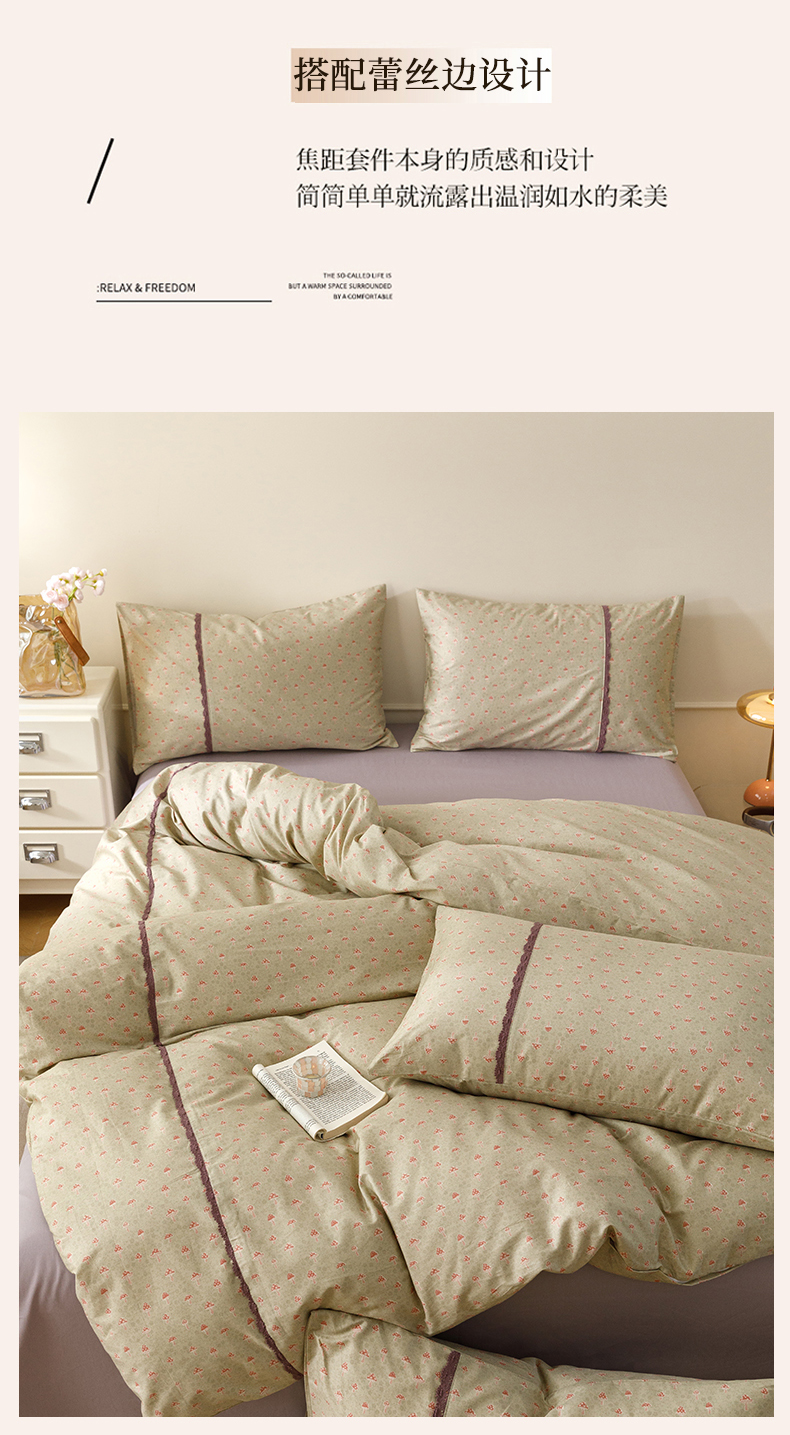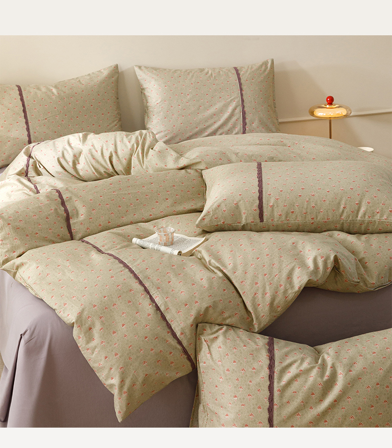 当前位置: 91家纺网 > 商品网购 > 床品套件 > 四件套 > 全棉普通四件套 > 女子家纺 2026新款40支13070全棉纯棉斜纹印花蕾丝四件套 青柠果络