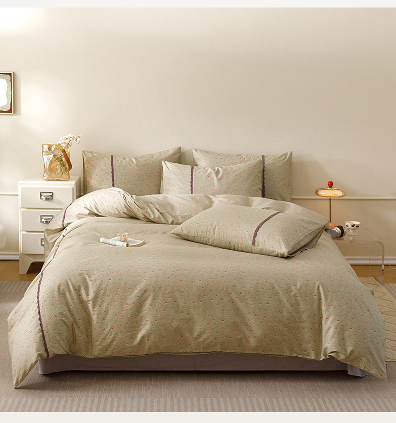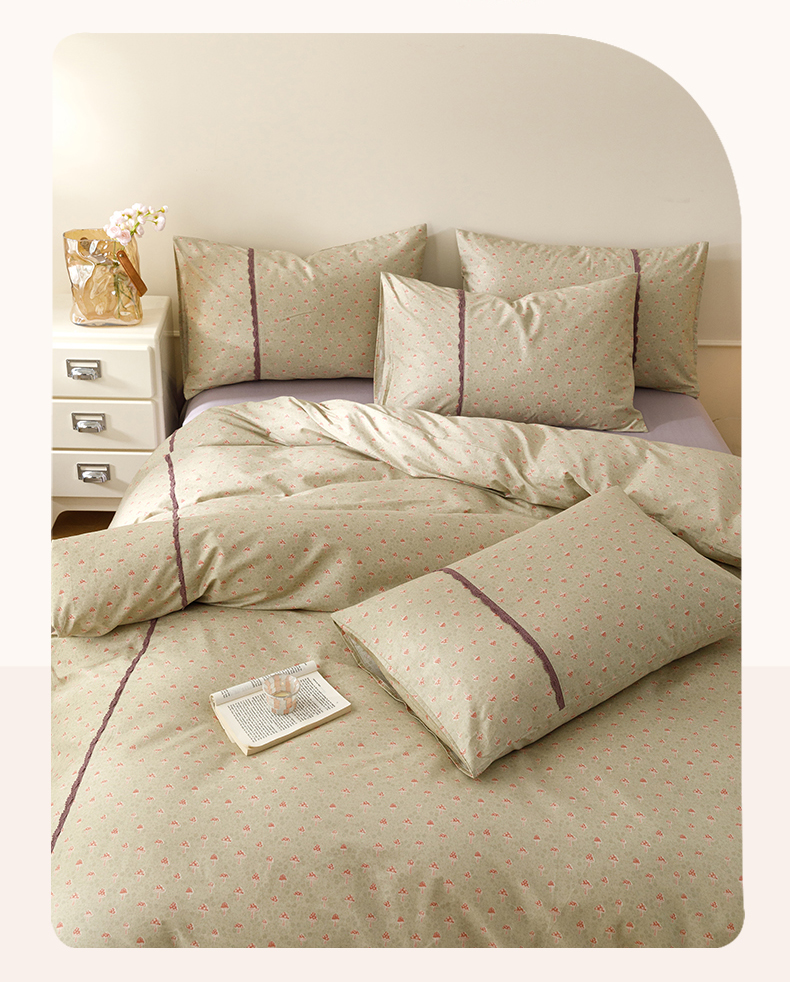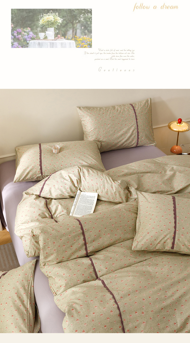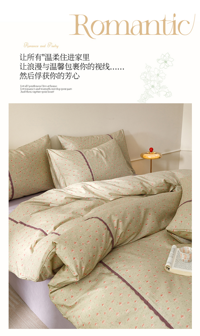 当前位置: 91家纺网 > 商品网购 > 床品套件 > 四件套 > 全棉普通四件套 > 女子家纺 2026新款40支13070全棉纯棉斜纹印花蕾丝四件套 青柠果络