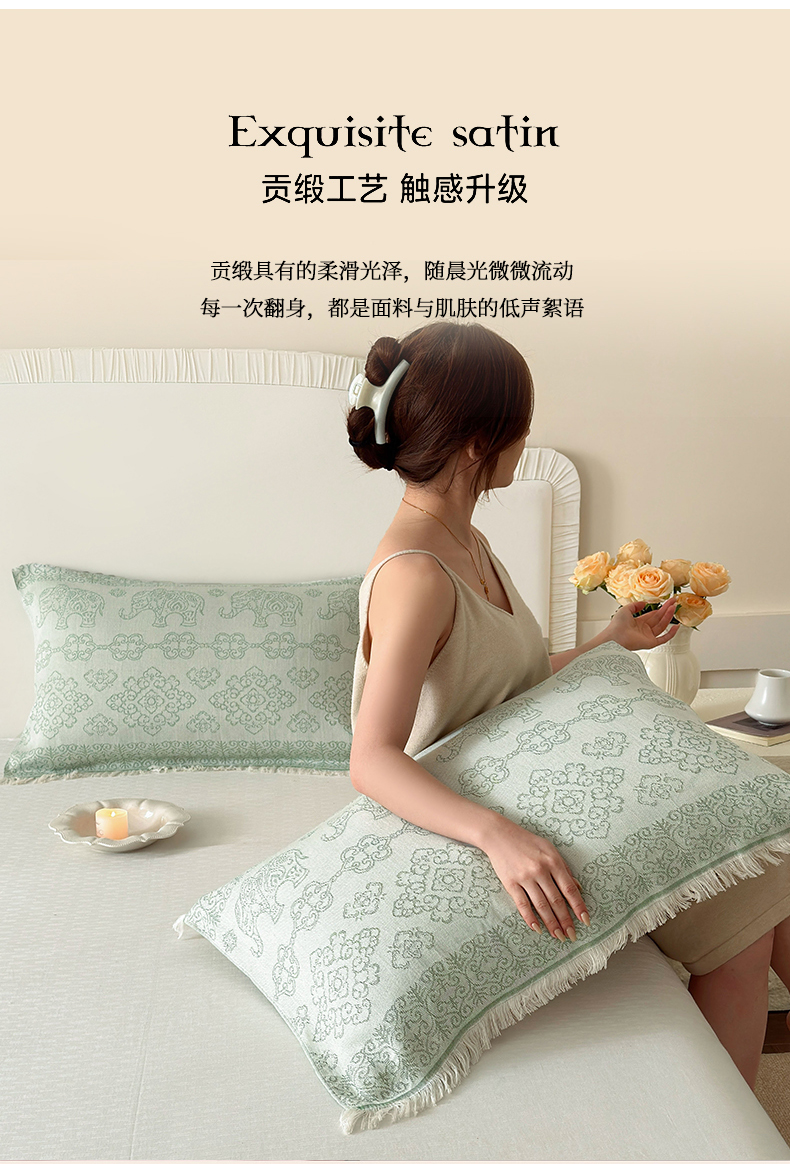 当前位置: 91家纺网 > 商品网购 > 床上用品 > 枕巾垫巾 > 朴尔家纺-毛巾被 2026新款长绒棉100s贡缎丝光棉纯棉流苏纱布枕巾 皇室吉象-绿