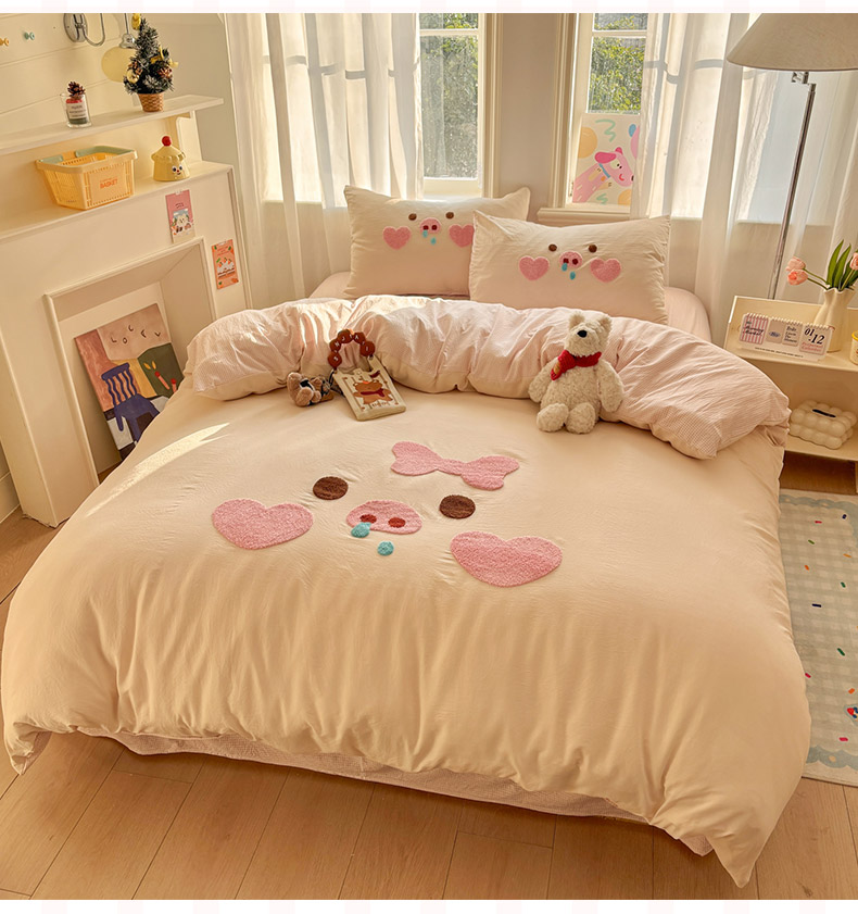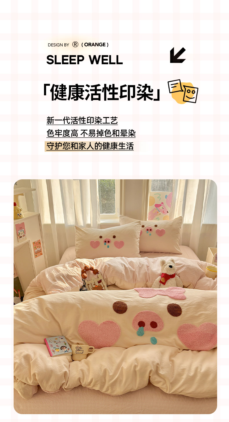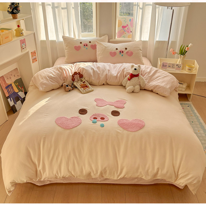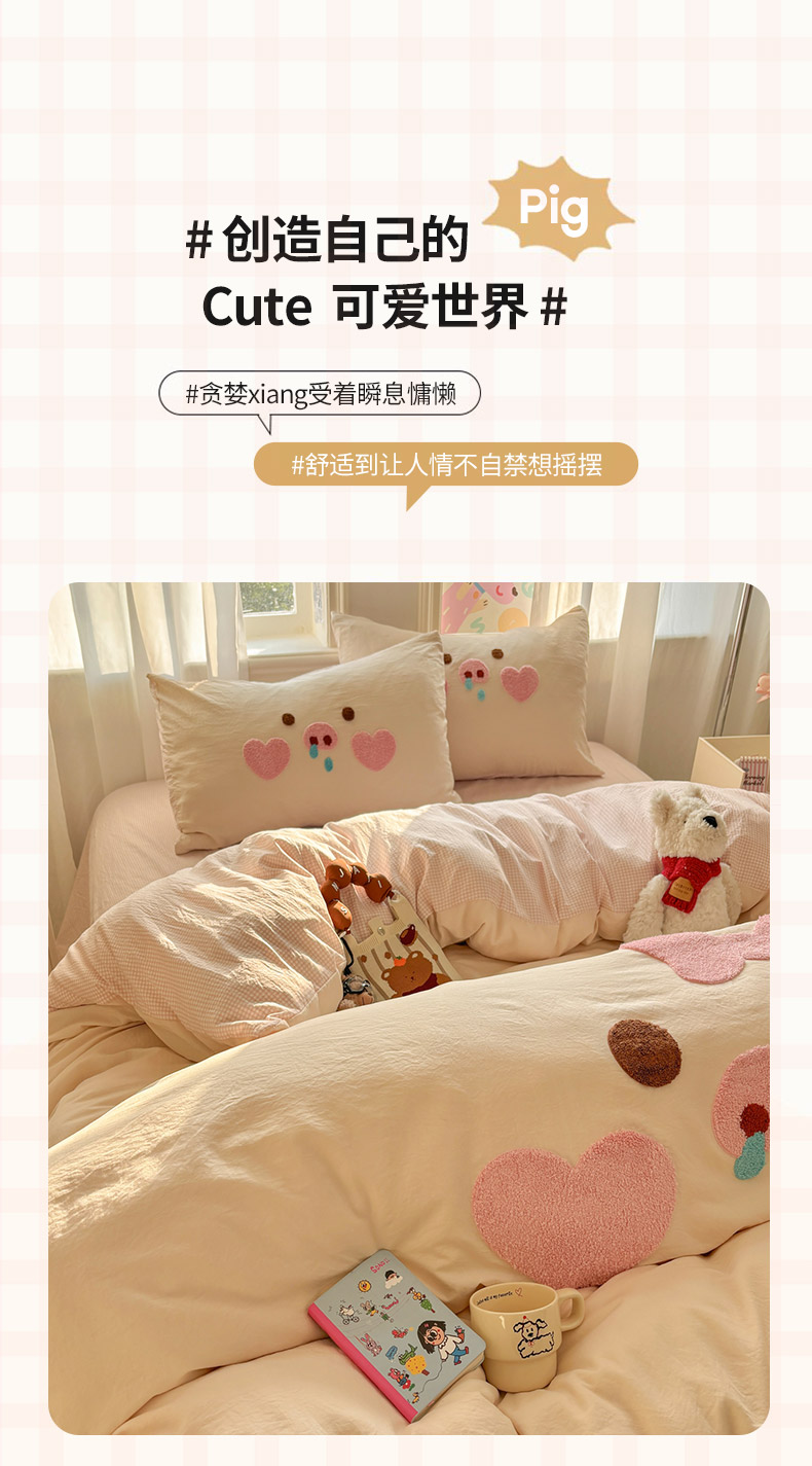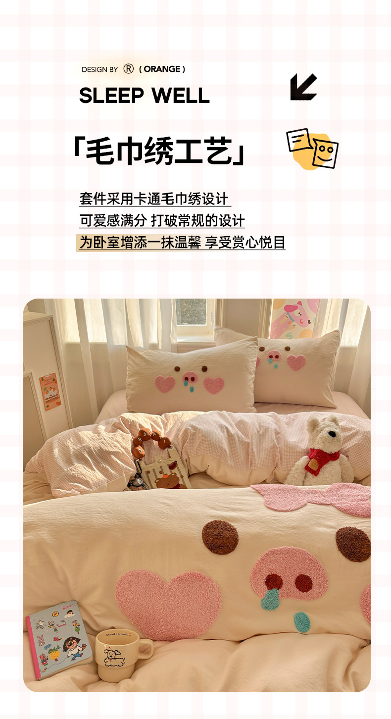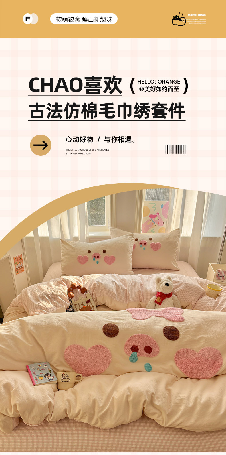 当前位置: 91家纺网 > 商品网购 > 床品套件 > 四件套 > 其它四件套 > 色鬼布艺高端家居主号 2026新款古法毛巾绣四件套 爱心猪猪-香槟