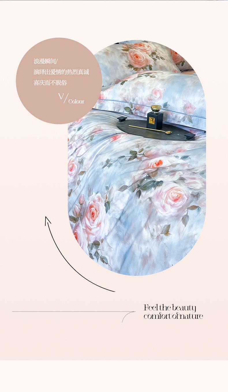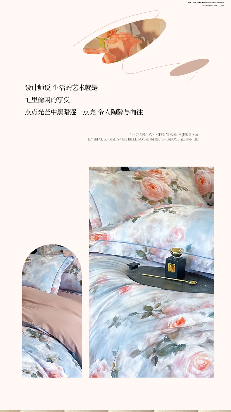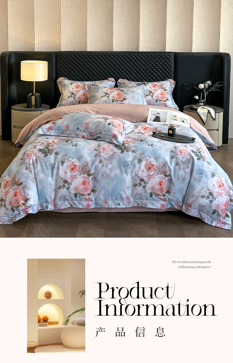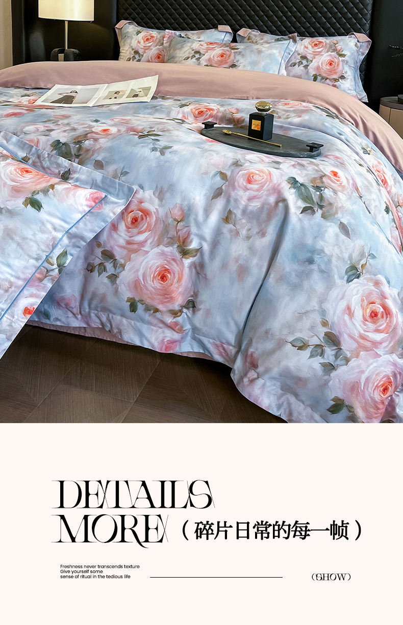 (总)润锦云 2026新款A类长绒棉纯棉数码印花宽边四件套,暗香疏影,花漾盛典,玫瑰庄园,叶语悠然