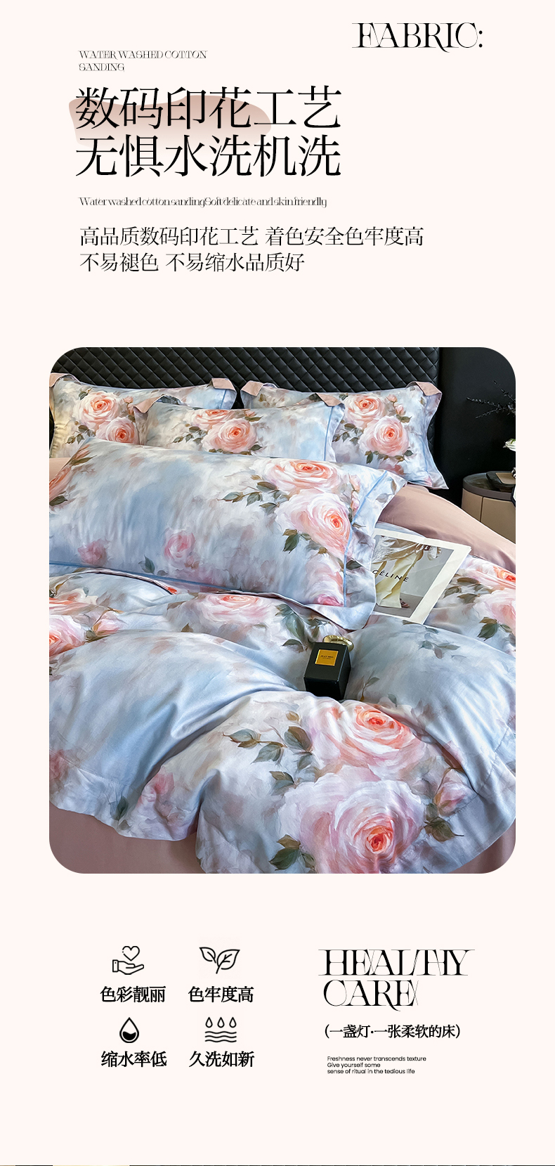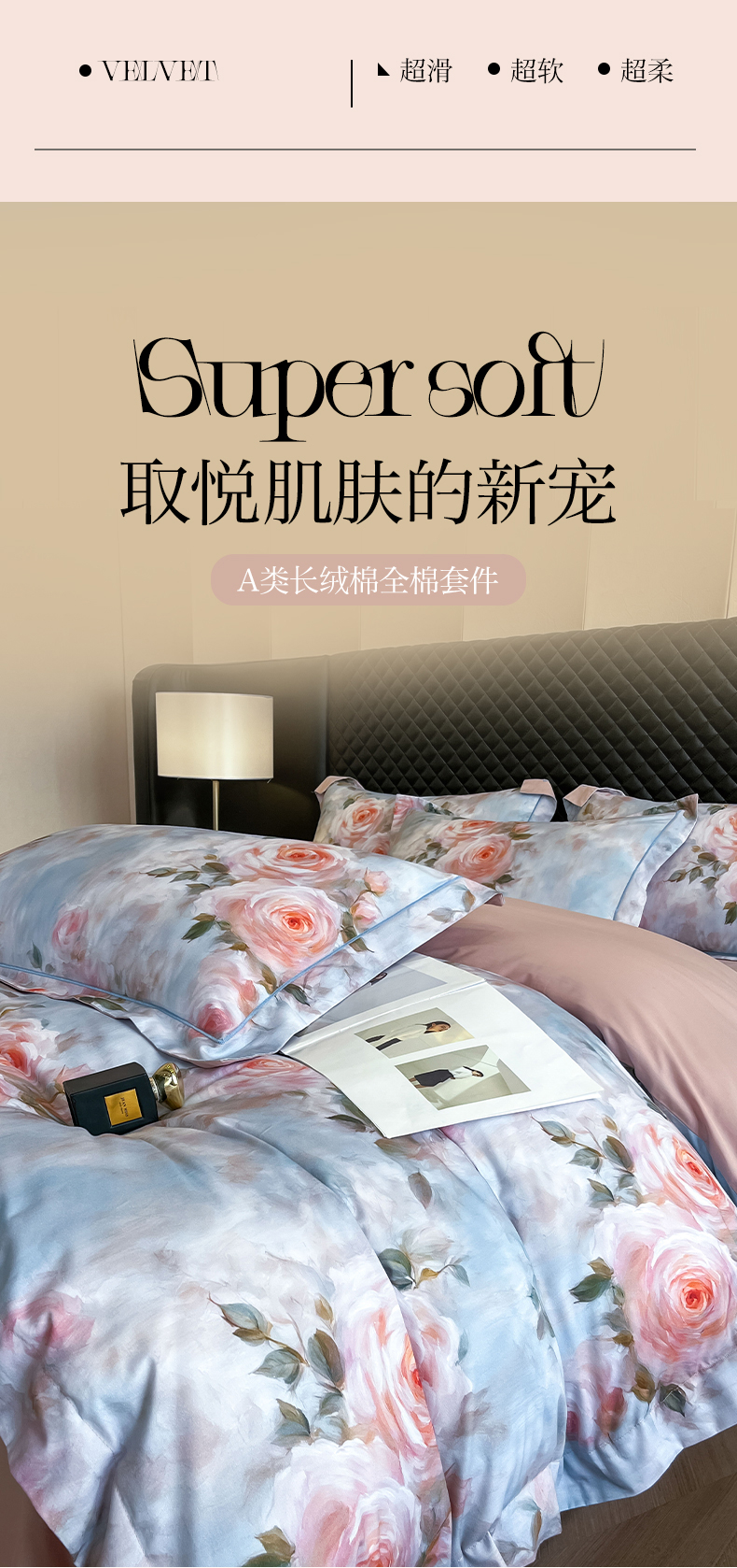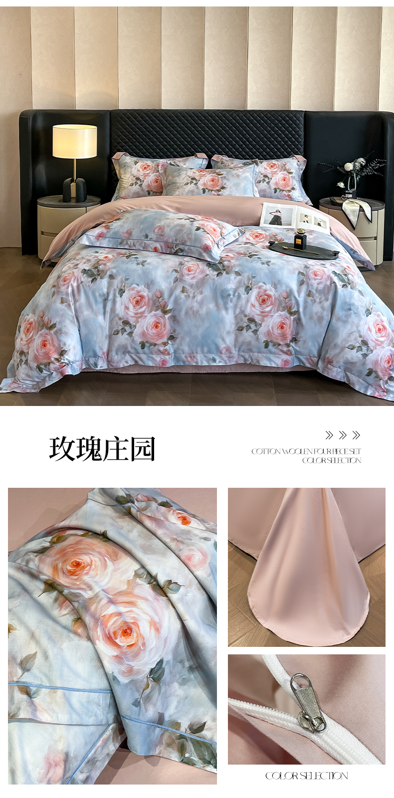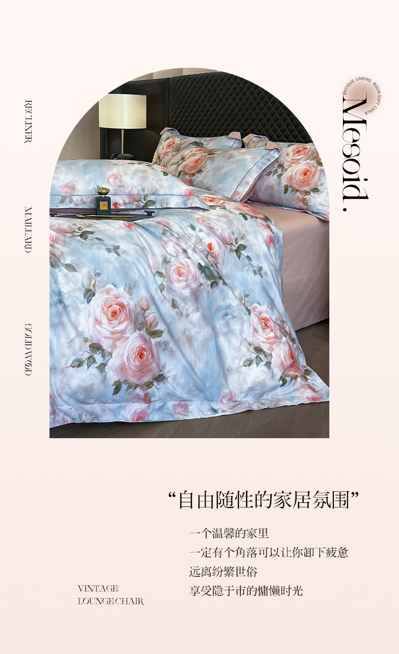 (总)润锦云 2026新款A类长绒棉纯棉数码印花宽边四件套,暗香疏影,花漾盛典,玫瑰庄园,叶语悠然
