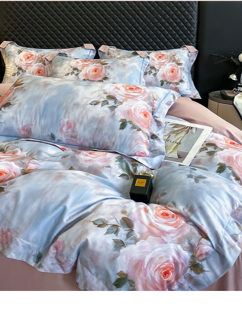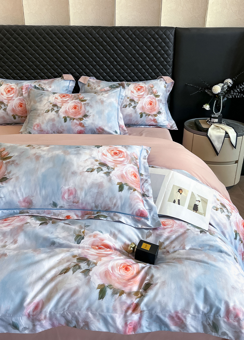 润锦云 2026新款A类长绒棉纯棉数码印花宽边四件套 玫瑰庄园