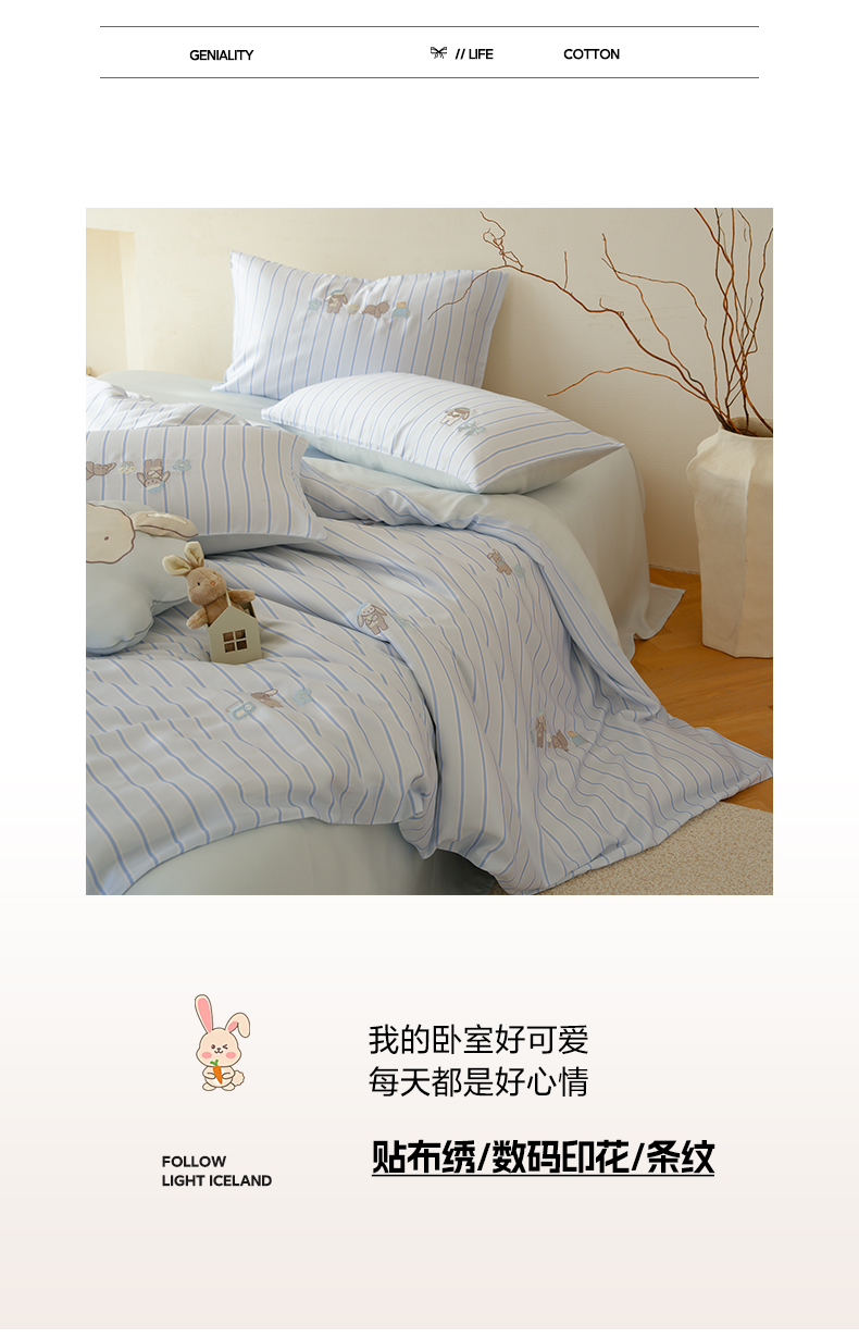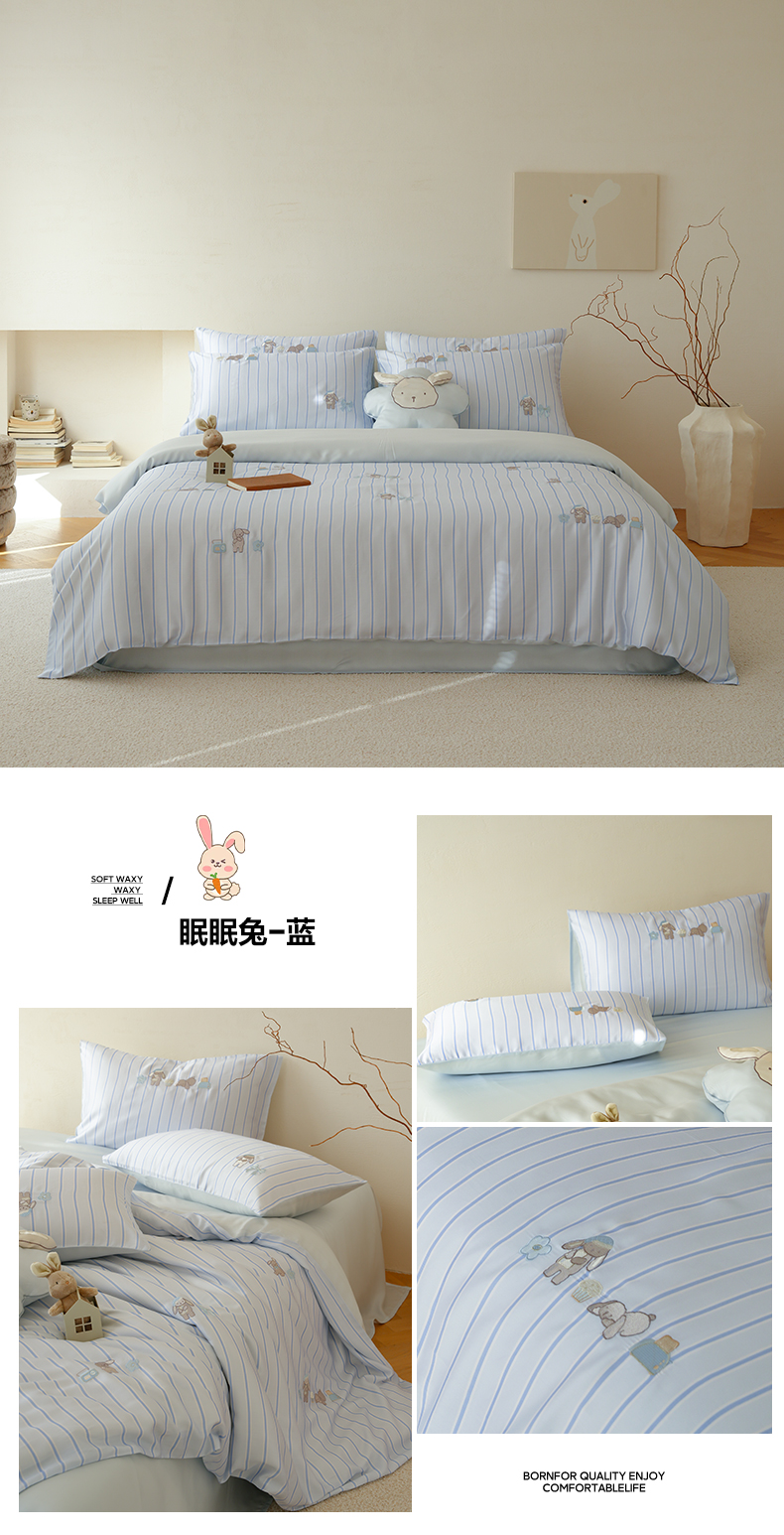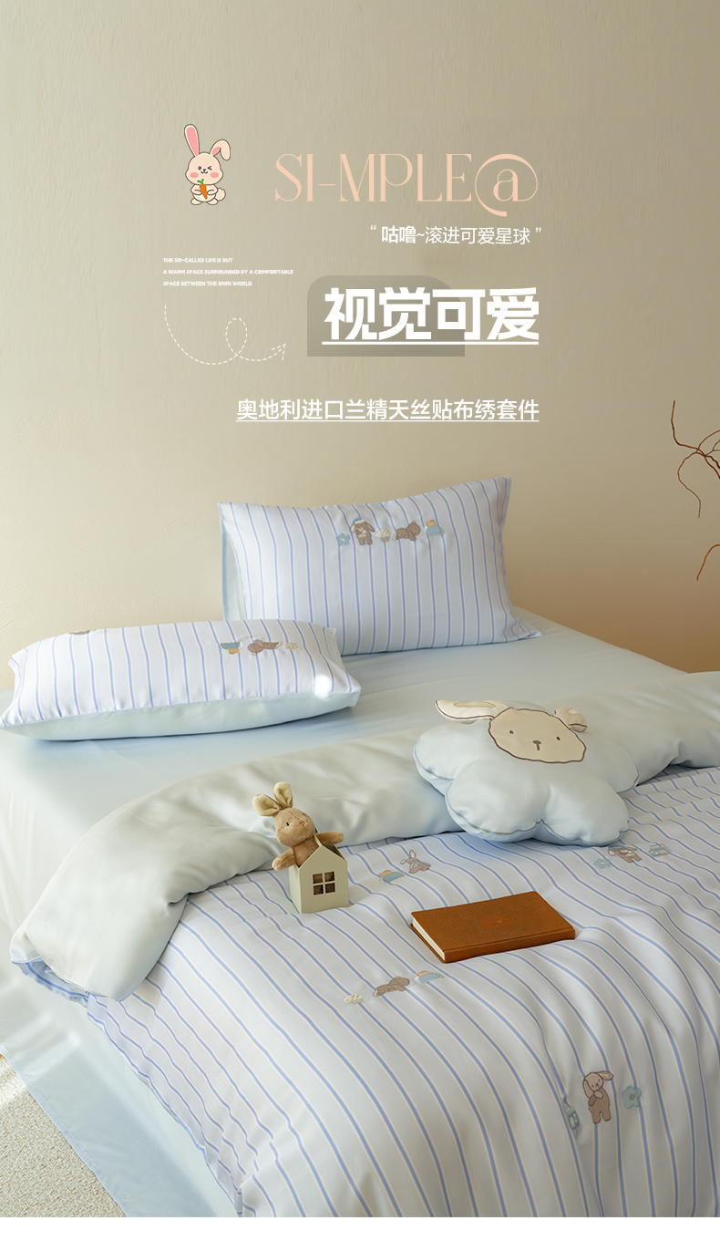 当前位置: 91家纺网 > 商品网购 > 床品套件 > 四件套 > 莱赛尔四件套 > 简纯主义 2026新款莱赛尔纤维天丝刺绣绣花四件套眠眠兔 眠眠兔-蓝