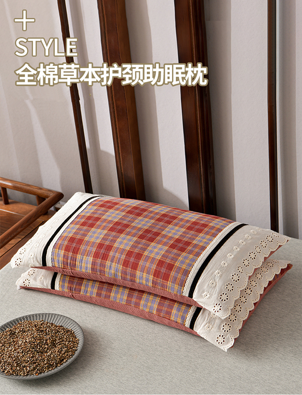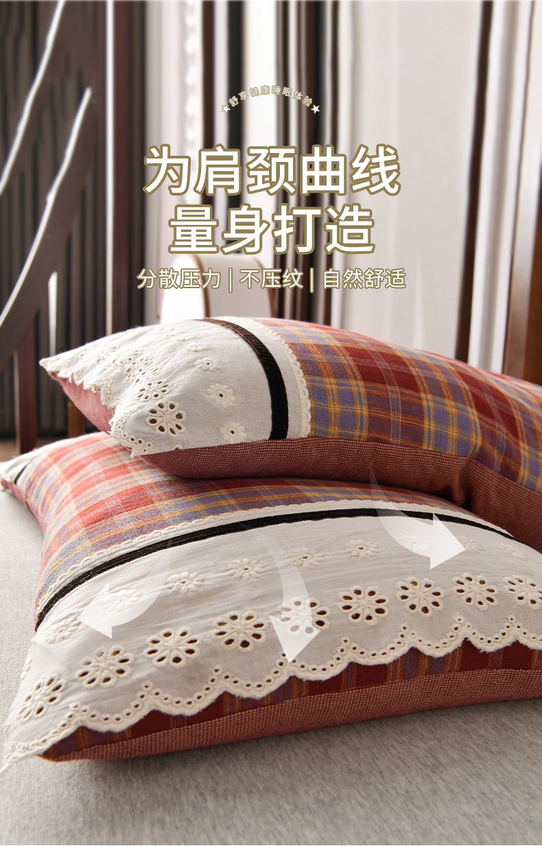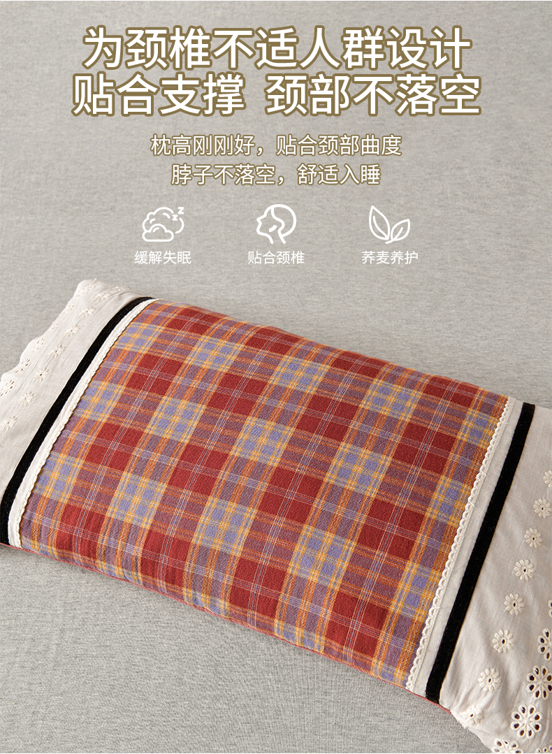 商品名称:小桃姐家纺 2025新款花边全棉纯棉双层纱荞麦枕枕芯枕头 红大格