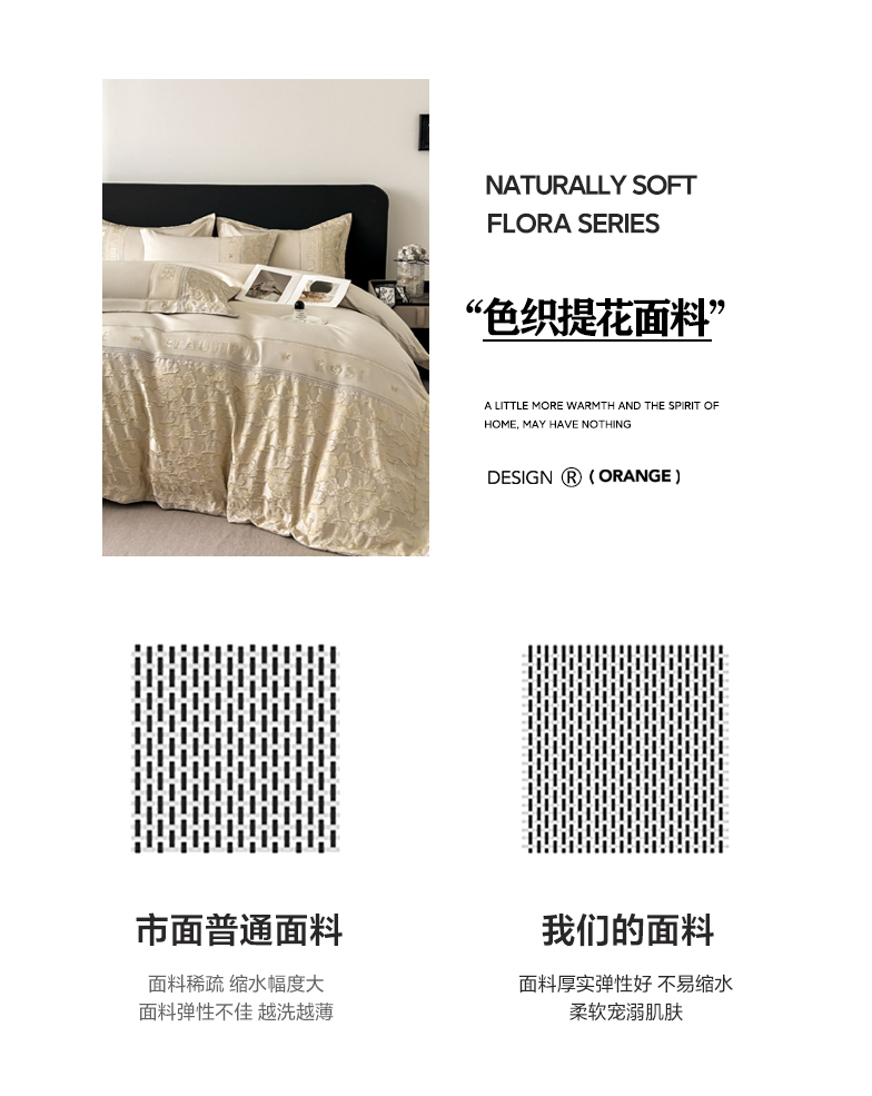 商品名称:七七家纺 2026新款色织提花花田系列四件套 花田-香槟金