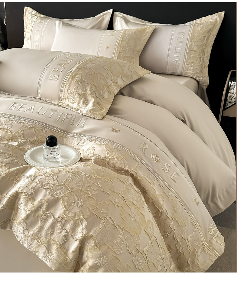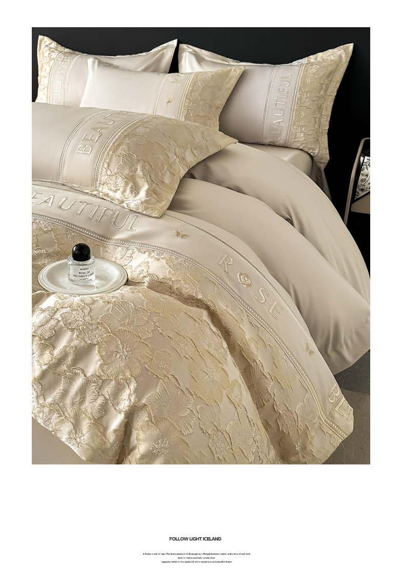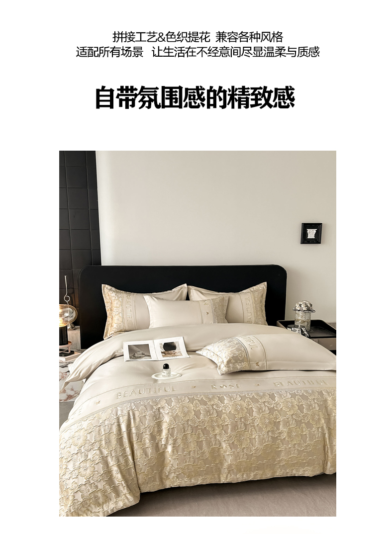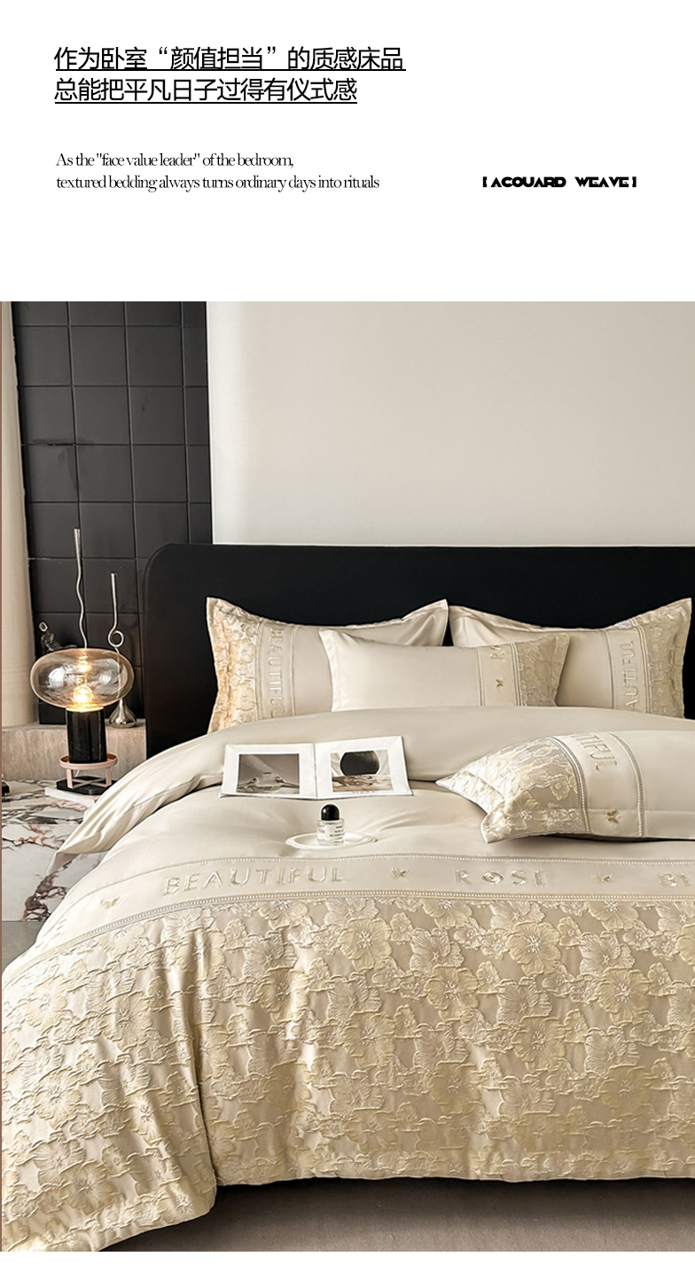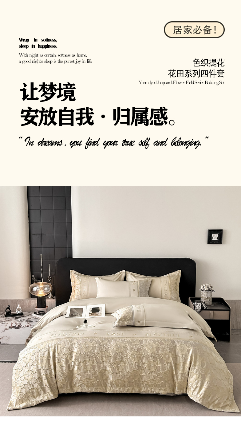 七七家纺 2026新款色织提花花田系列四件套 花田-香槟金