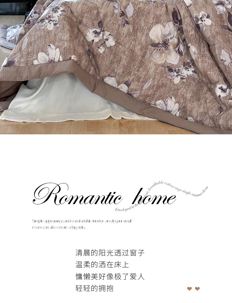 商品名称:中国龙家纺 2026新款木棉皱皱纱单夏被被子被芯 棕调花影