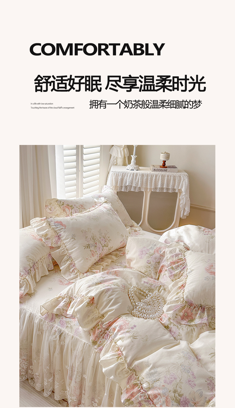 (总)瑞宝 2026新款春款全棉印花床裙四件套【控价265起 各平台严格控价:所有尺寸在扣除店铺优惠券后利润不得少于70(包含活动期)】