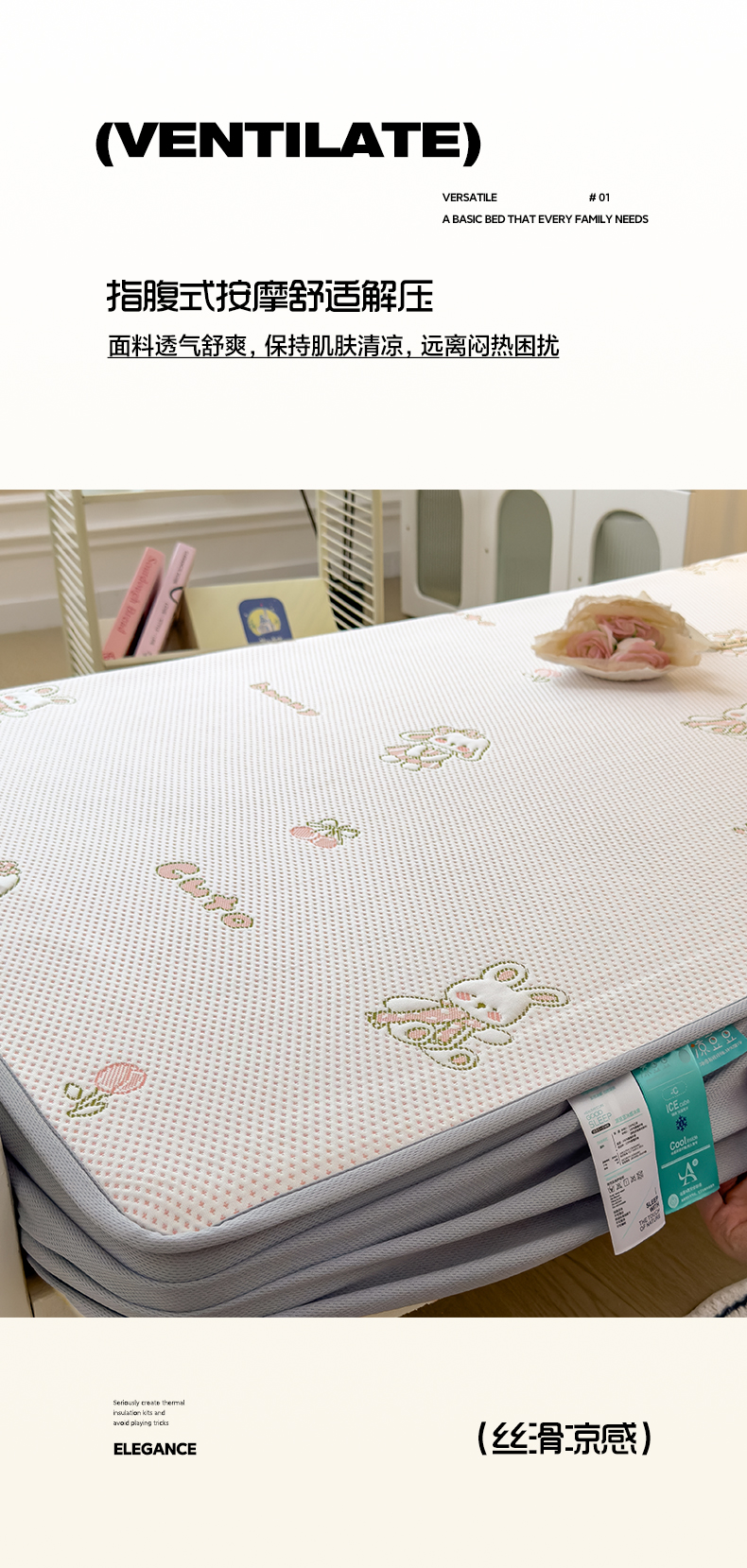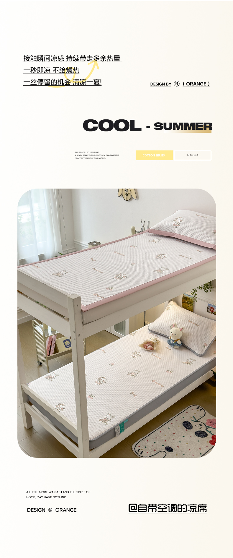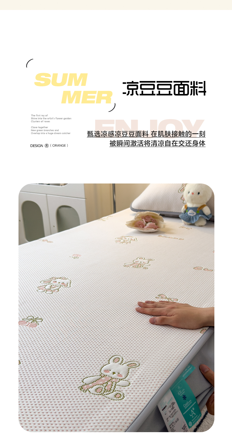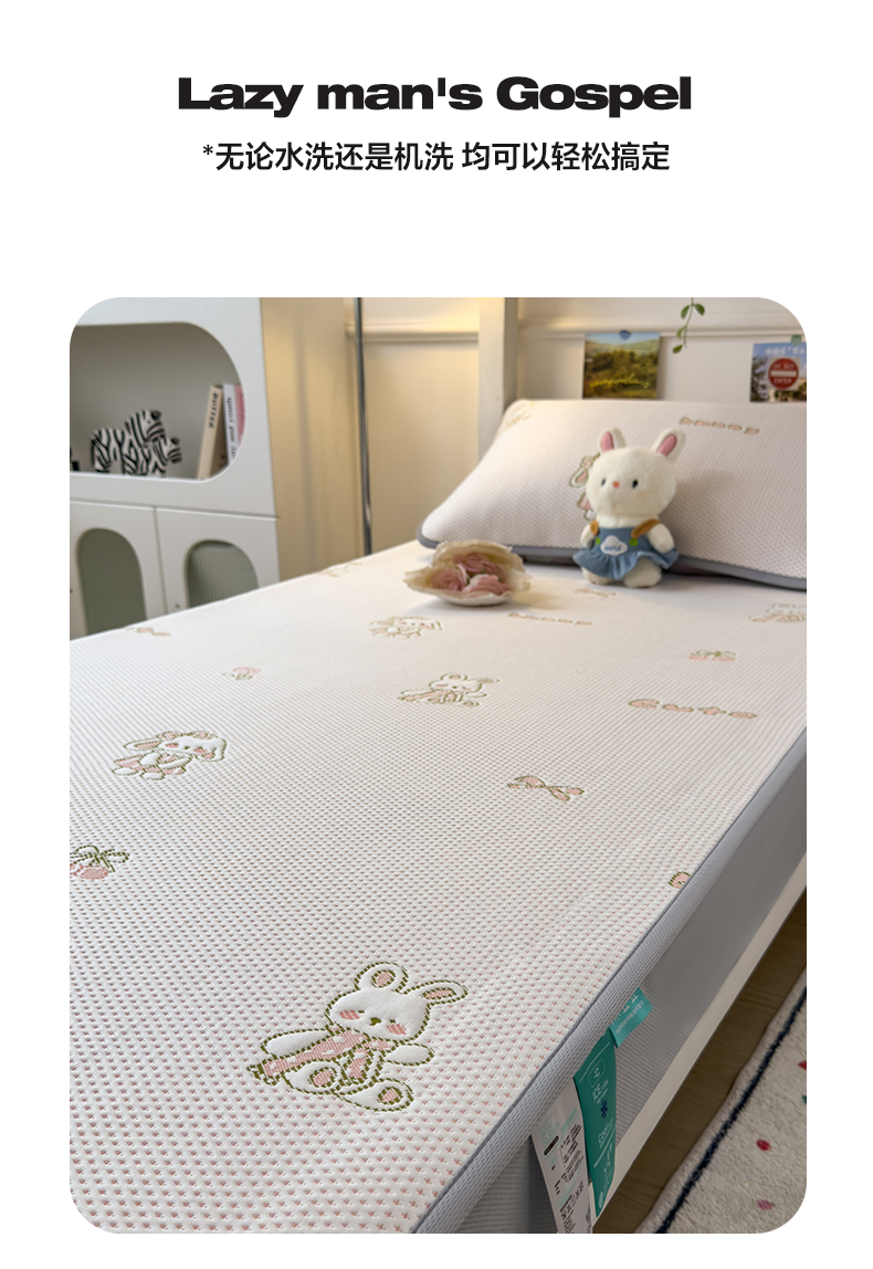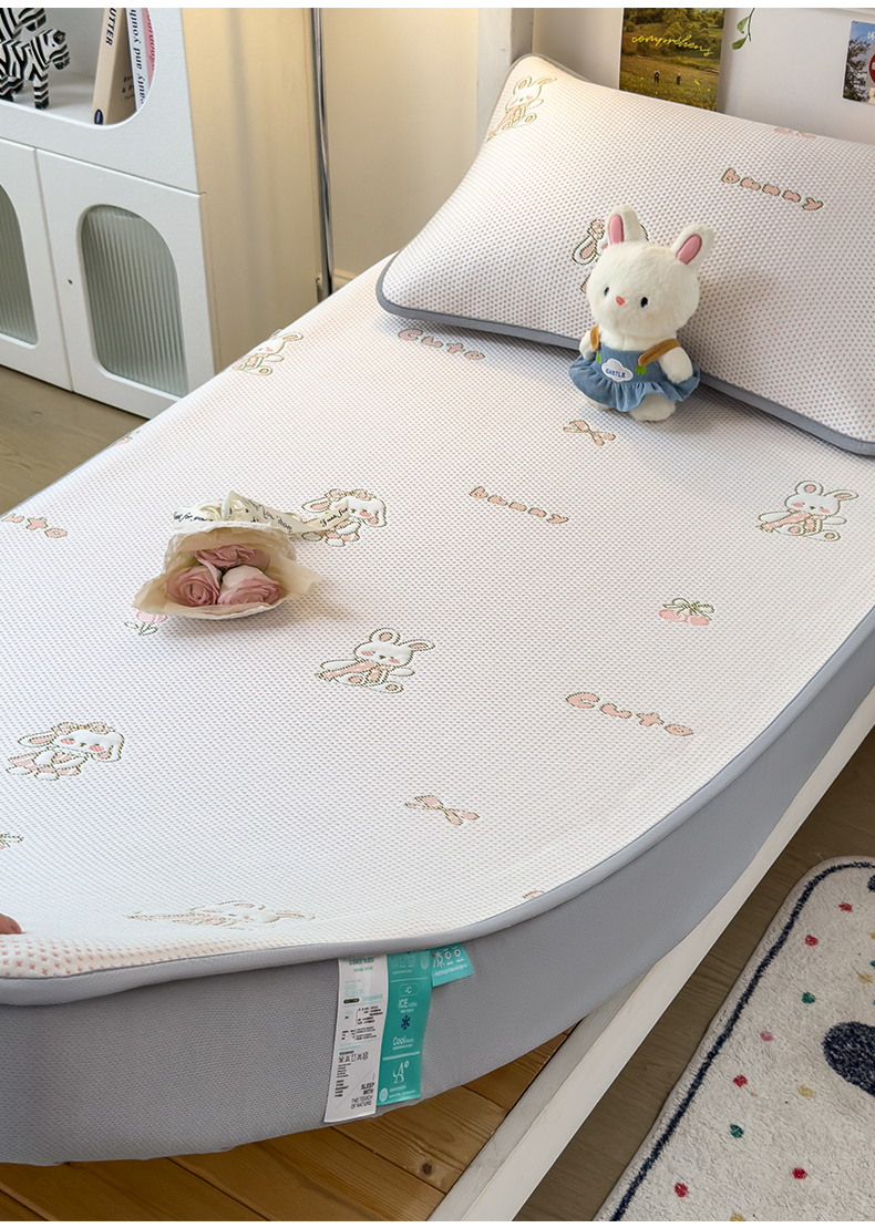 商品名称:凯罗 2026新款A类凉豆豆学生宿舍用床席可水洗凉席席子床笠款 兔叽乖乖-床笠款
