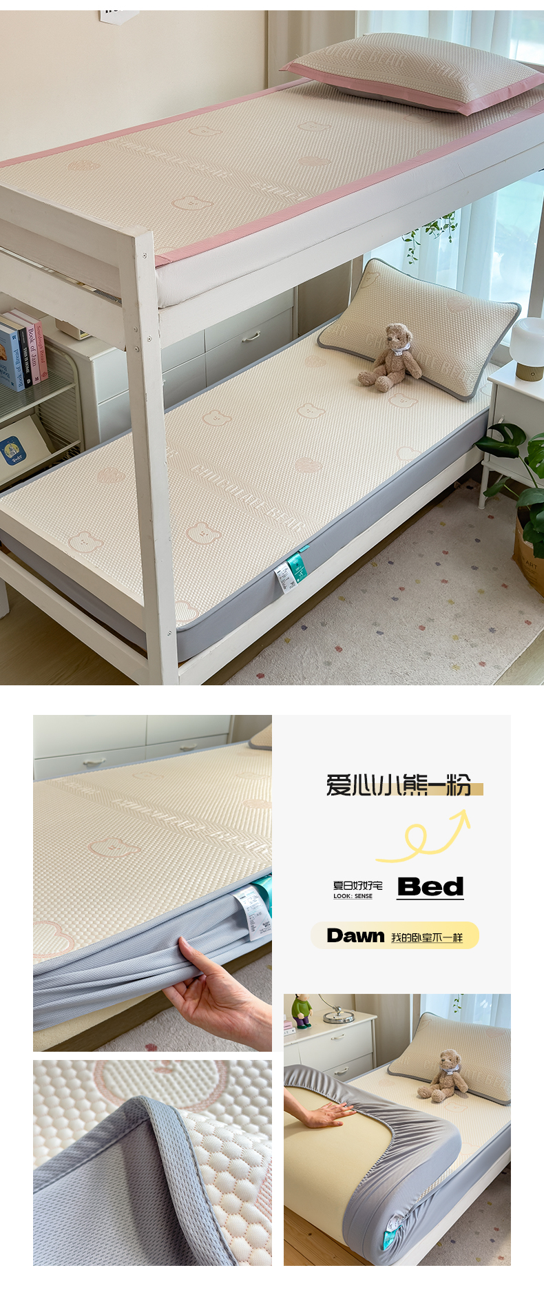 (总)凯罗 2026新款可水洗凉豆豆夏季席子凉席三件套,Hello--熊,爱心小熊--浅粉,敦敦熊--浅粉,敦敦熊--蓝灰,爱心小熊-咖,花儿朵朵--浅粉