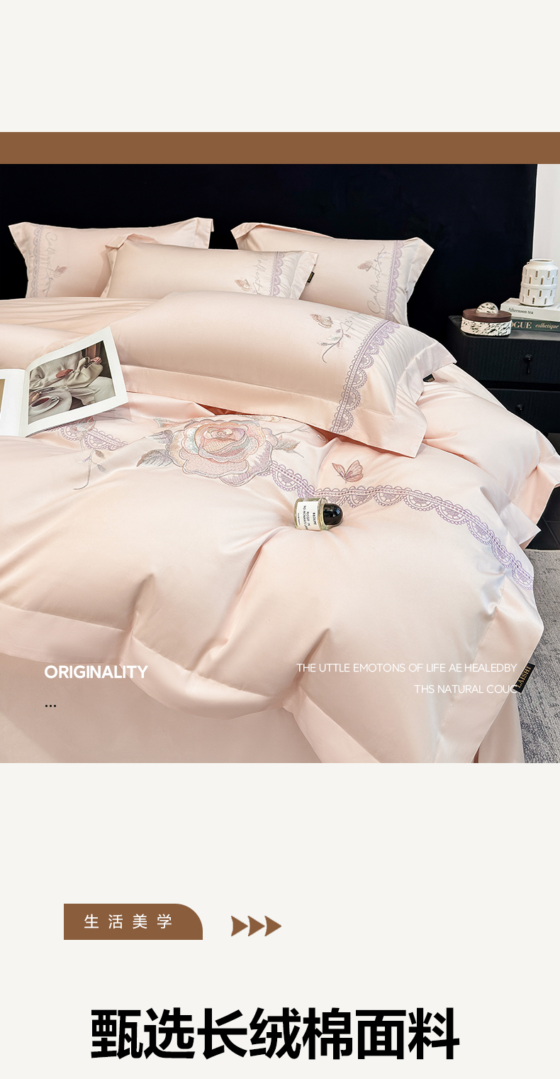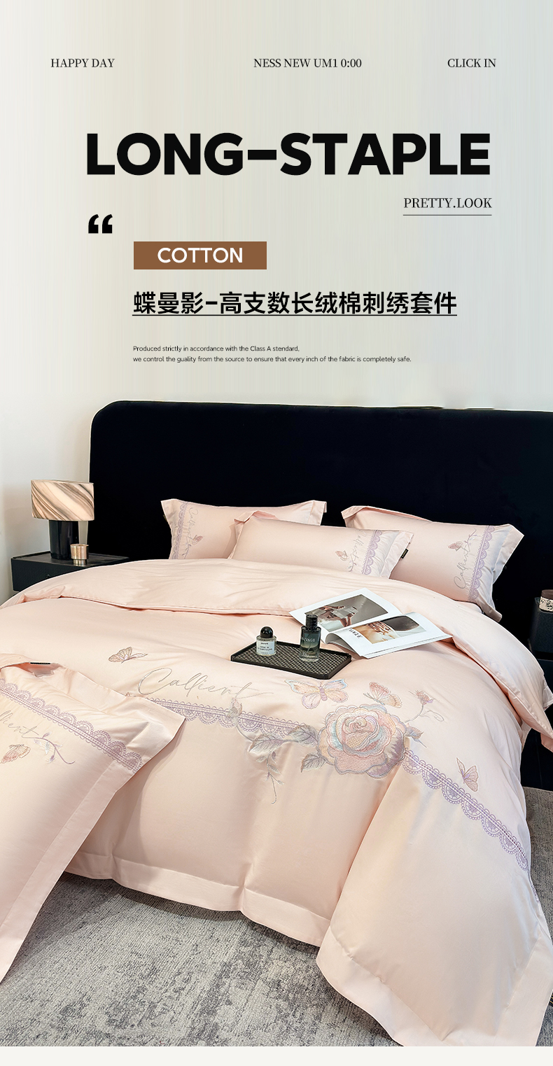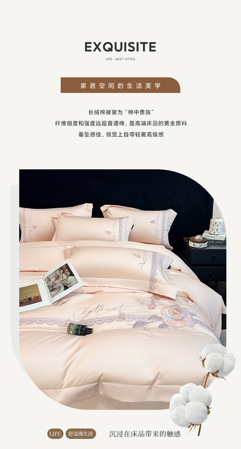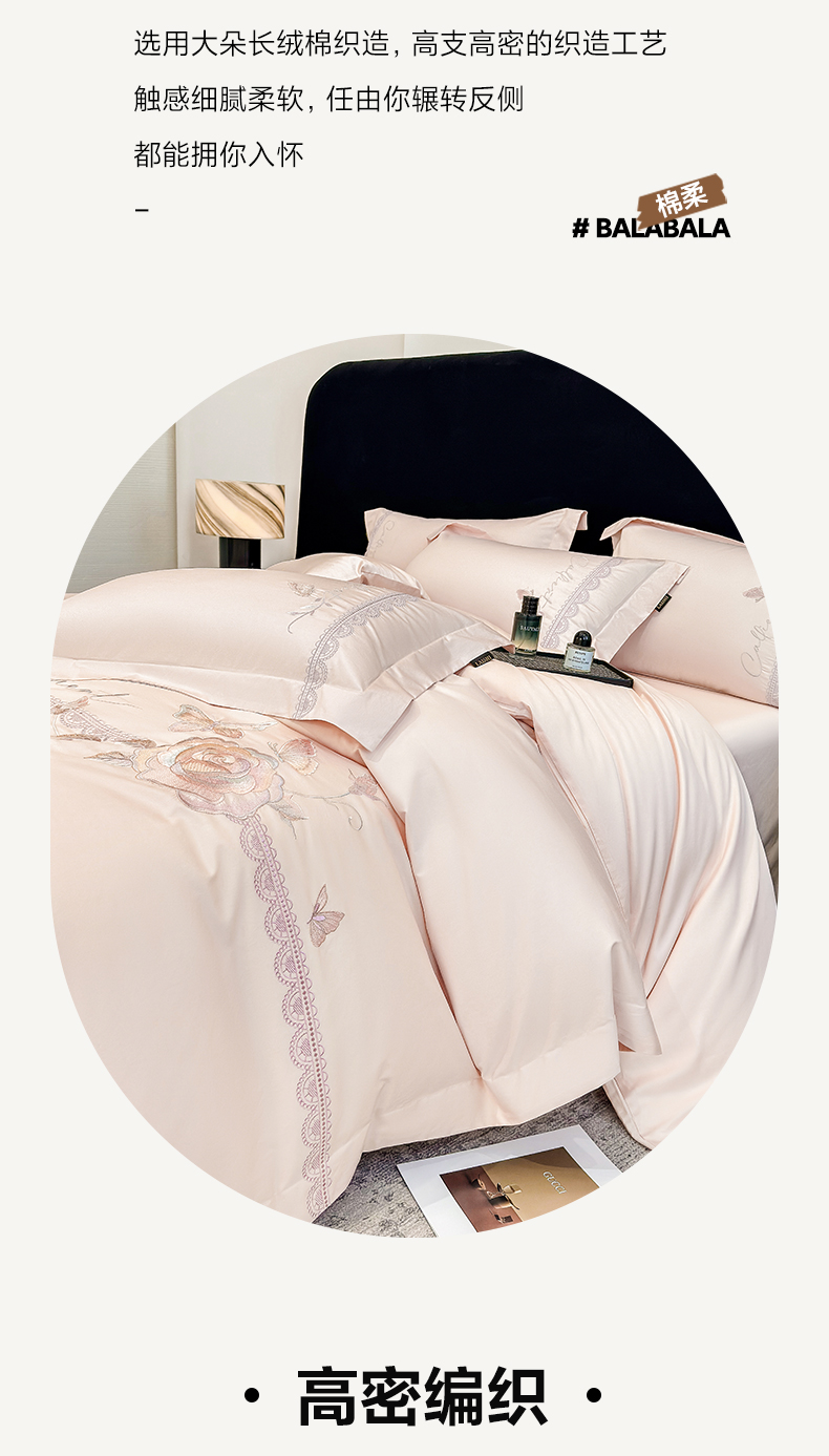 当前位置: 91家纺网 > 商品网购 > 床品套件 > 四件套 > 长绒棉四件套 > 莱势 2026新品100支纯棉全棉50x50s贡缎长绒棉纯棉刺绣绣花四件套高端礼盒 蝶曼影-轻奢粉