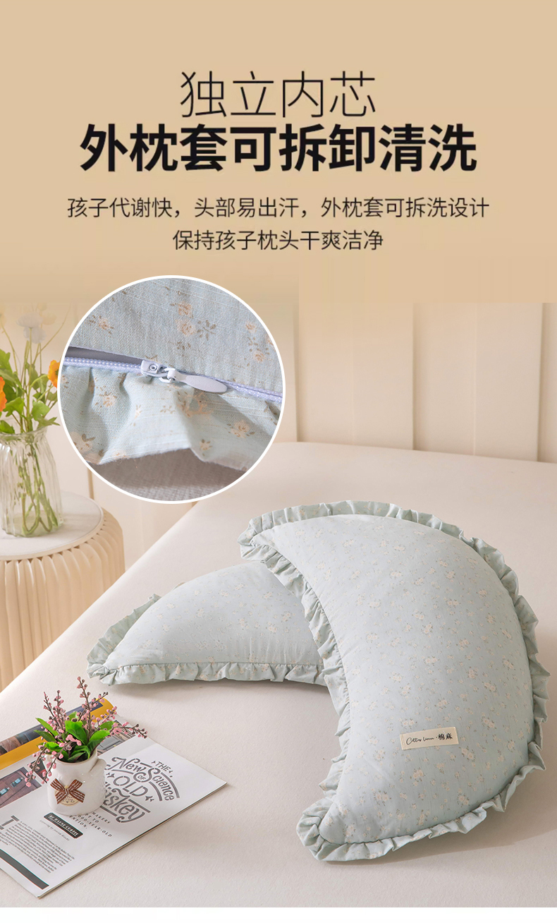 商品名称:(总)梦莱家纺 2026新款月牙形儿童棉麻荞麦枕枕头枕芯