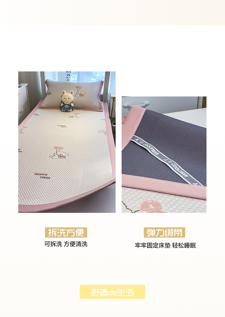(总)凯罗 2026新款可水洗凉豆豆夏季席子凉席三件套,Hello--熊,爱心小熊--浅粉,敦敦熊--浅粉,敦敦熊--蓝灰,爱心小熊-咖,花儿朵朵--浅粉