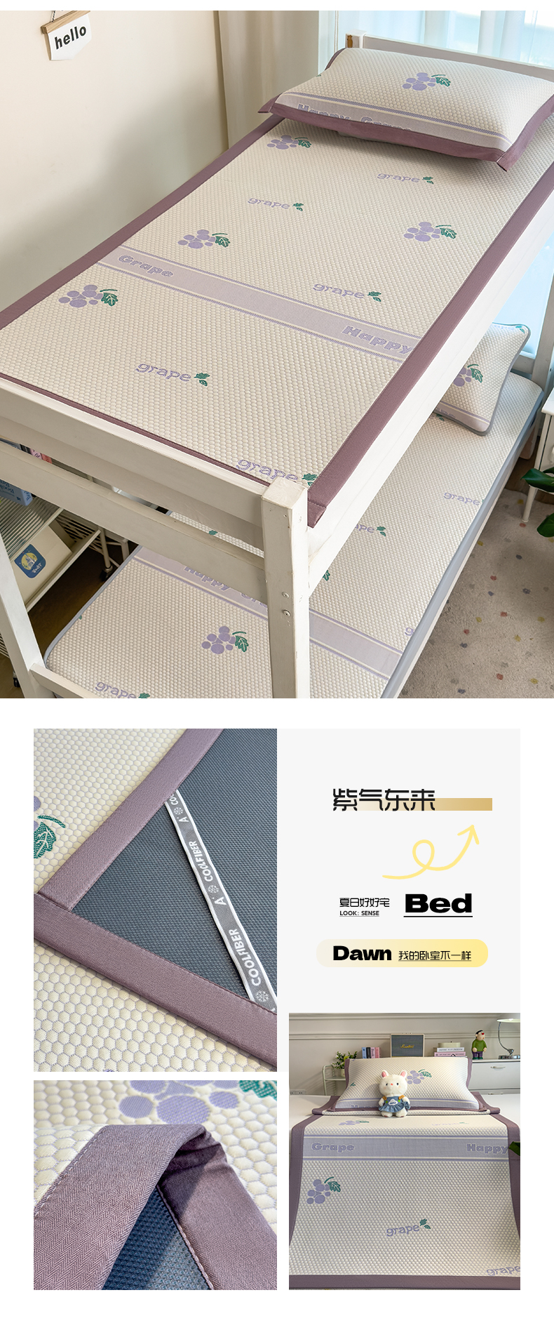 (总)凯罗 2026春夏凉豆豆小红书爆款A类乙纶PE凉豆豆床席款可水洗床席,波点草莓-粉,布丁萌萌熊,小萌狗,小南瓜-桔