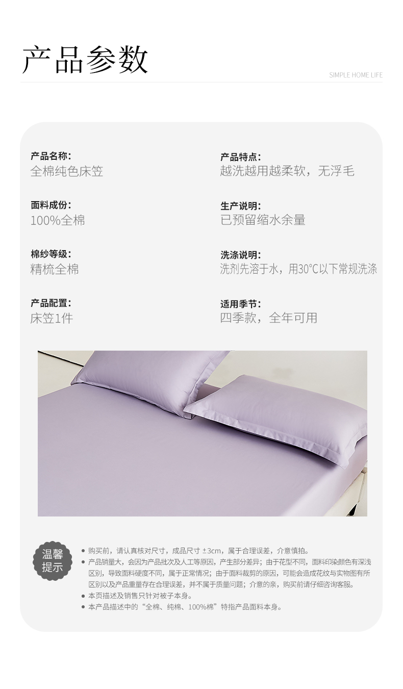商品名称:(总)元元家居(元元被业) 2026新款全棉纯棉13372套件及单品【纯色款】-单床笠床笠单件