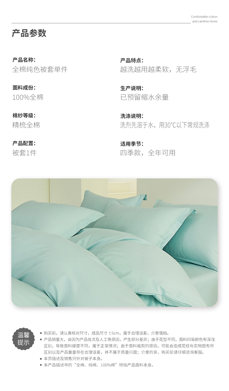 商品名称:元元家居(元元被业) 2026新款全棉纯棉13372套件及单品【纯色款】-单被套被套单件 天梦蓝