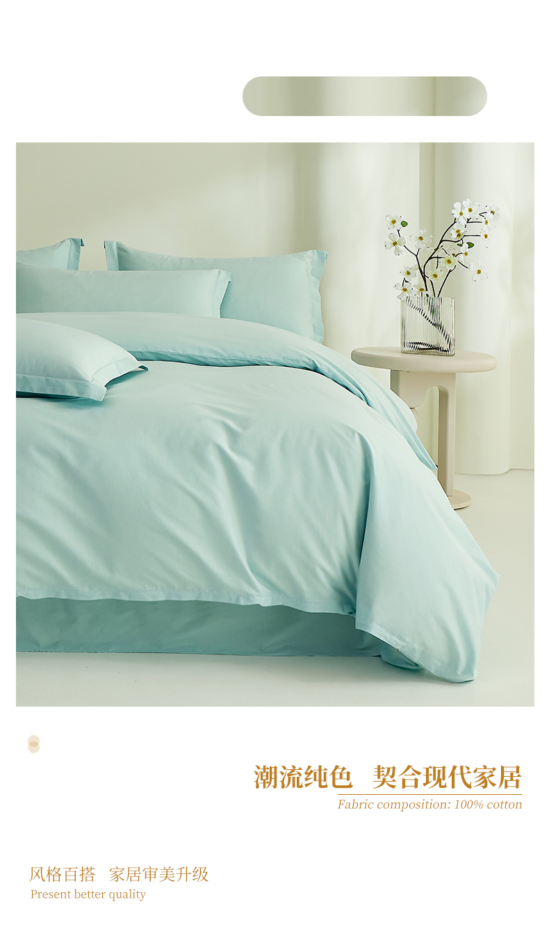 (总)元元家居(元元被业) 2026新款全棉纯棉13372床盖款四件套-纯色款,果粉,罗兰紫,麦田绿,天梦蓝,炫彩粉,雅灰