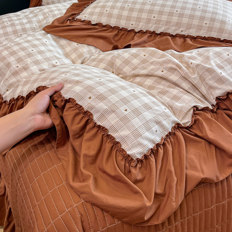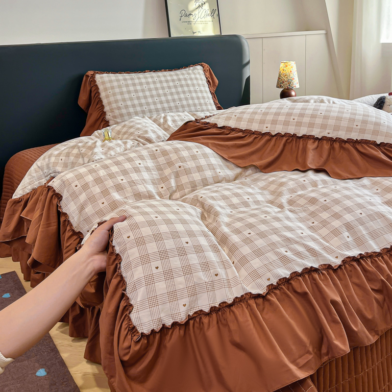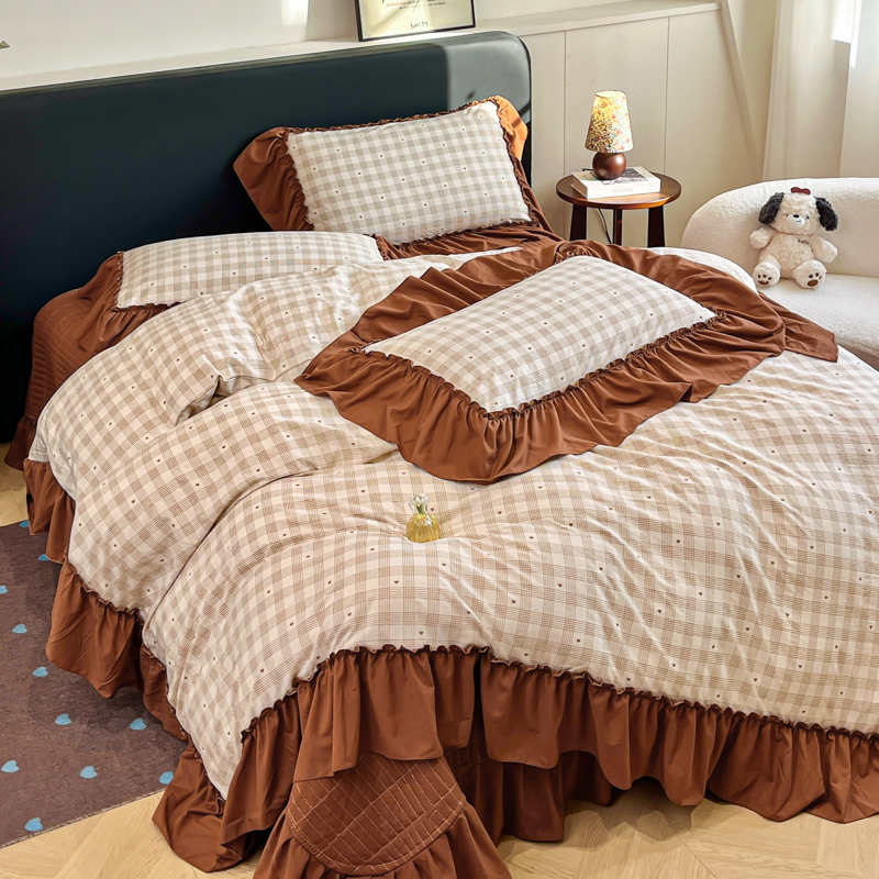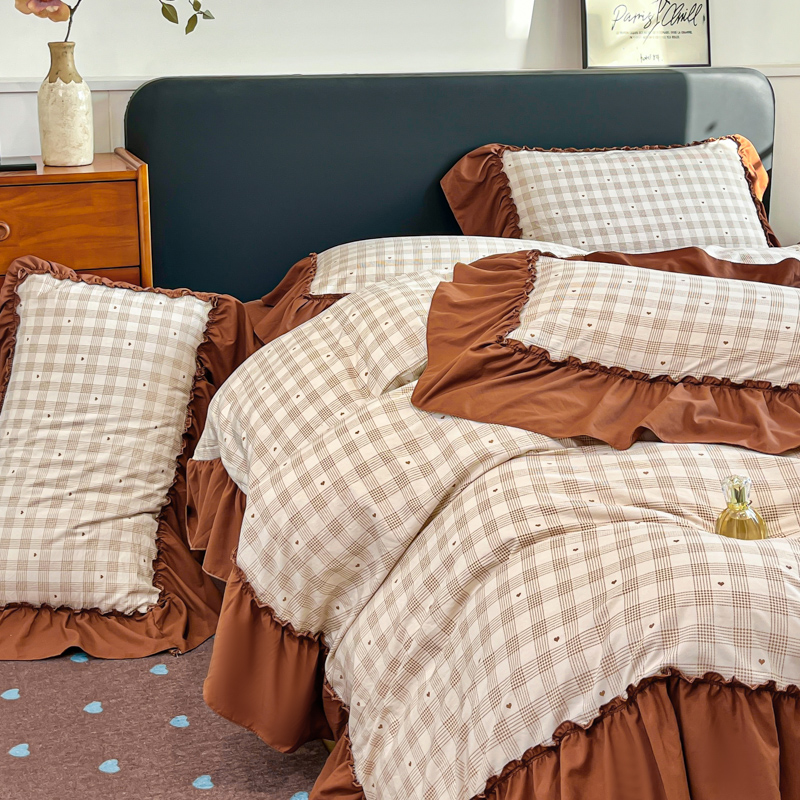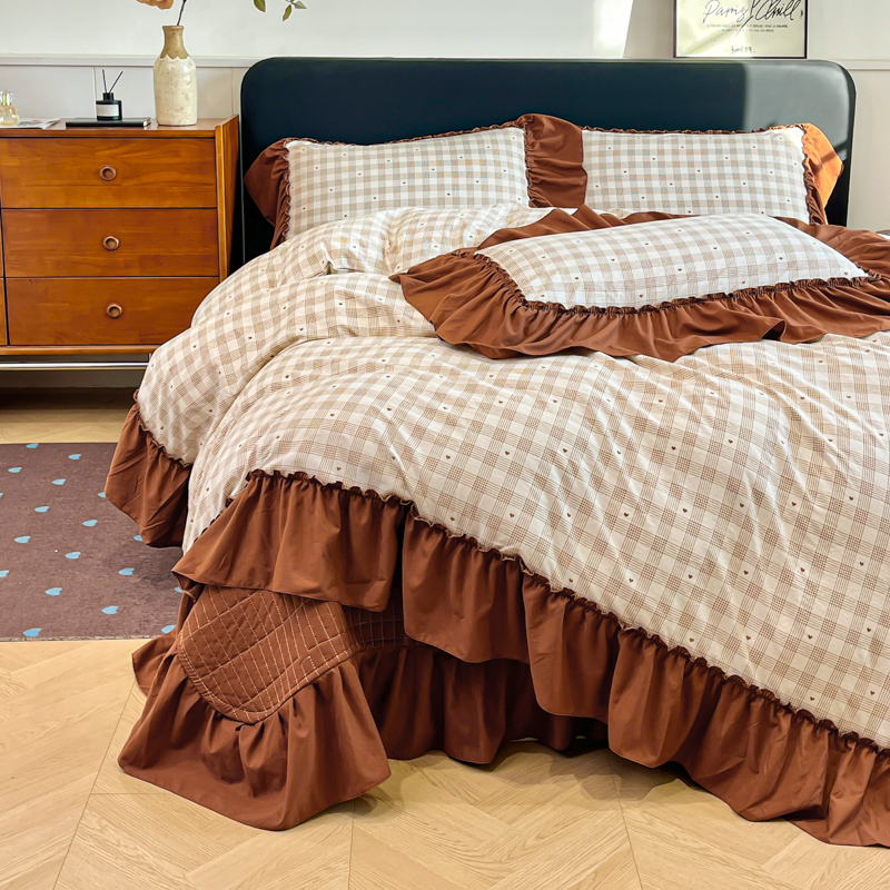尚美 2026新款法式复古大花边仿棉床盖四件套 甜心格