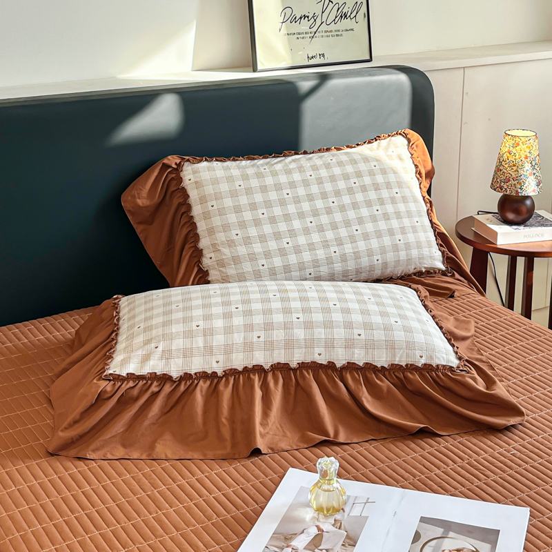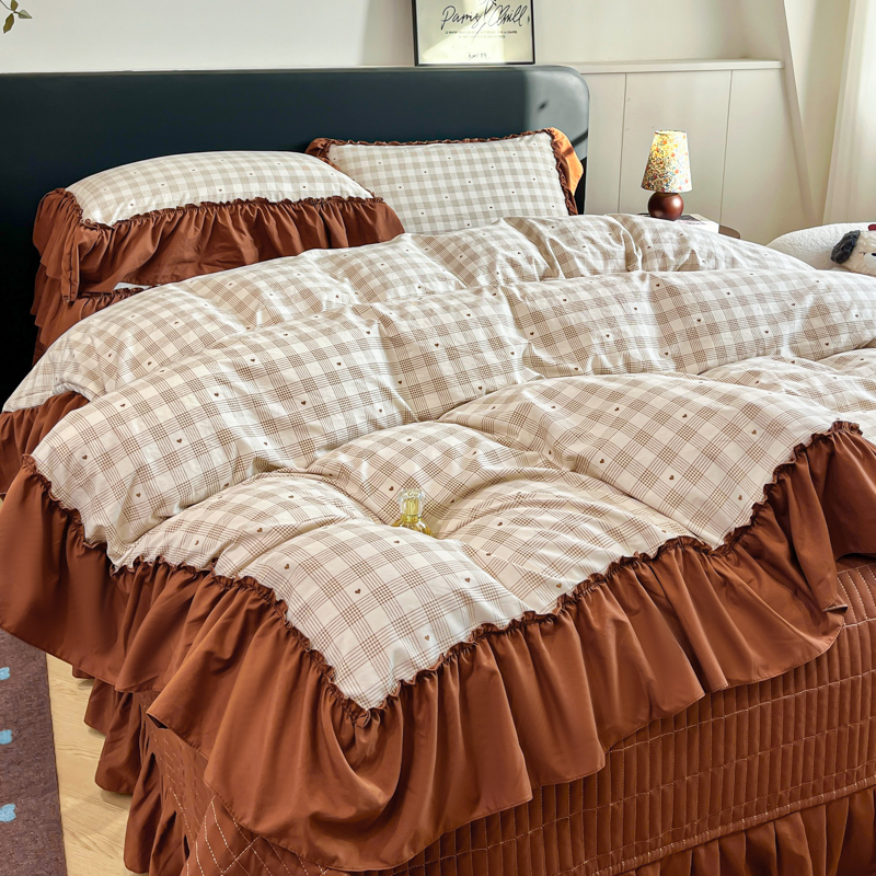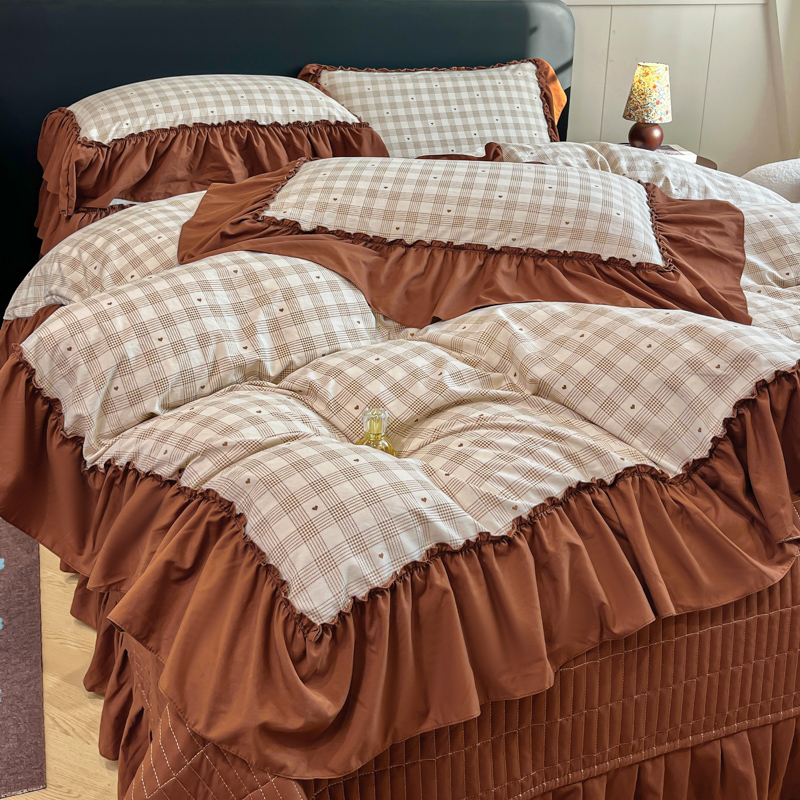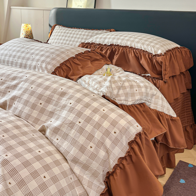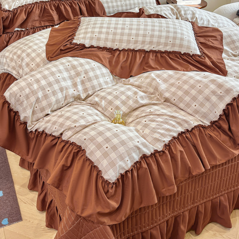尚美 2026新款法式复古大花边仿棉床盖四件套 甜心格