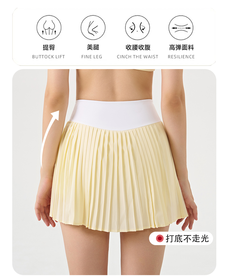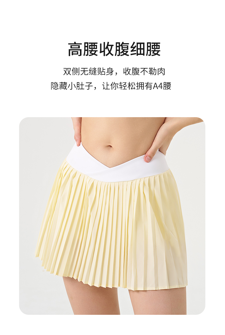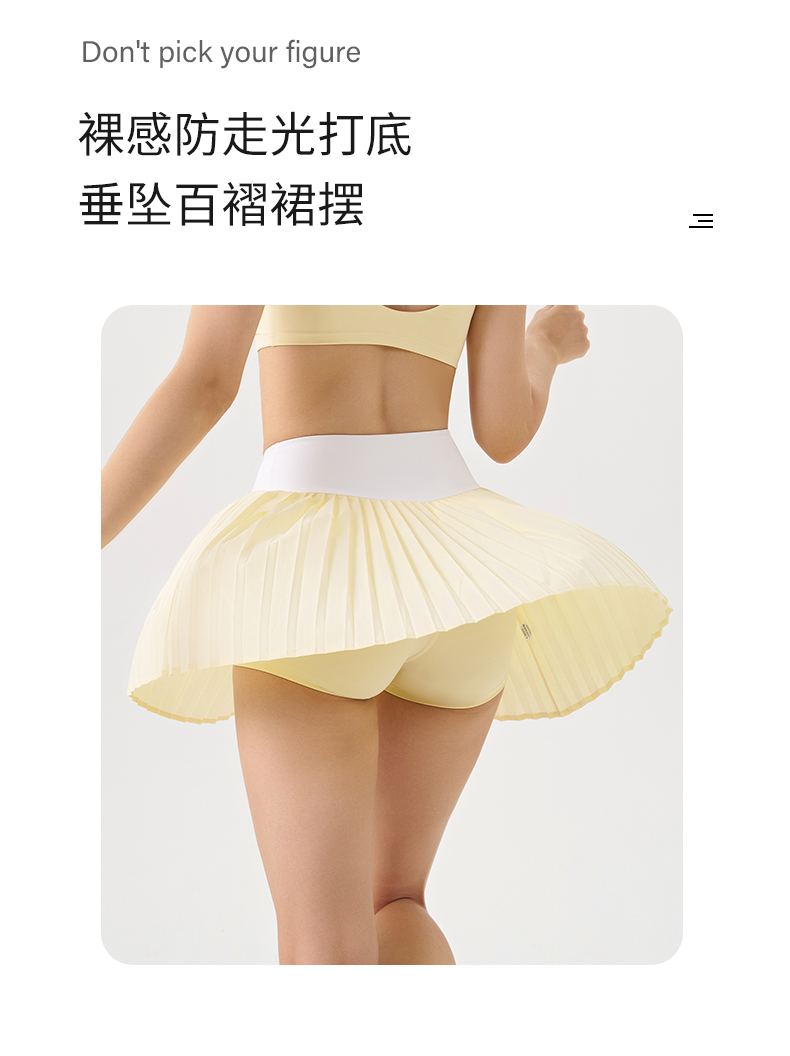 商品名称:(总)沐珩家纺 2026新款跨境休闲百褶裙透气假两件速干防走光跑步运动高腰健身短裙网球裙
