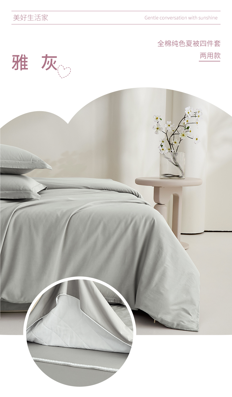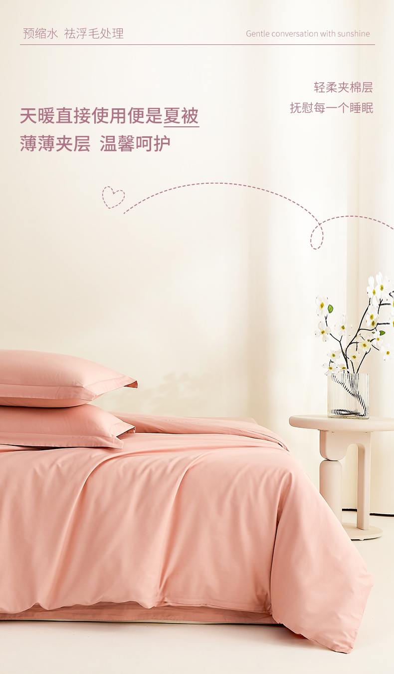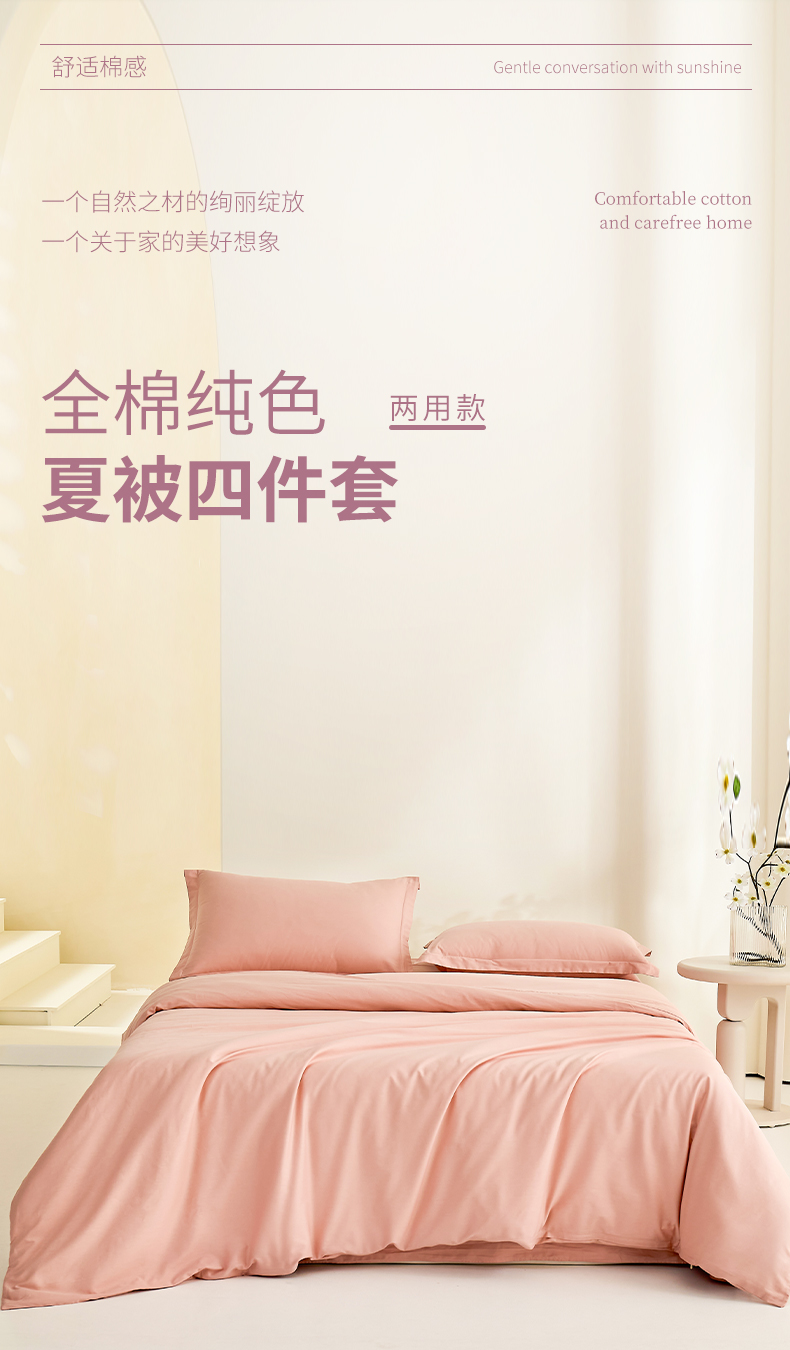 当前位置: 91家纺网 > 商品网购 > 床品套件 > 四件套 > 夏被四件套 > 元元家居(元元被业) 2026新款全棉纯棉13372纯色两用夏被夏凉被空调被四件套 炫彩粉